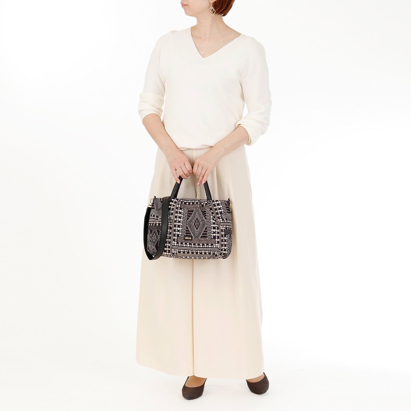ファブリックは繊維産業が盛んなバレンシア州アリカンテで40年以上の歴史を持ち、イビサではすでに20年近く扱っている信頼のテキスタイルメーカー、フラウペレス社製。しっかりと地厚で、長繊維で織られているため擦れても毛羽立ちが少ない点など、強度的にも優れています。イビサらしくレザーを配することできちんとしたバッグの印象を保ちながら、持っていることを忘れるほどの軽さも魅力です。