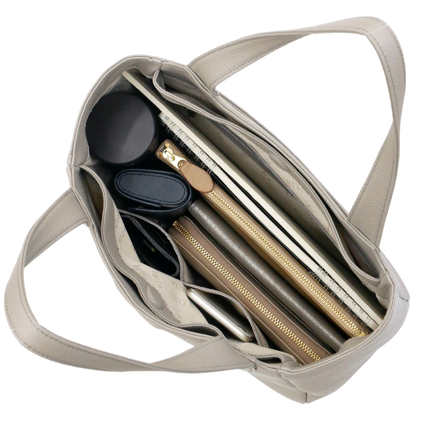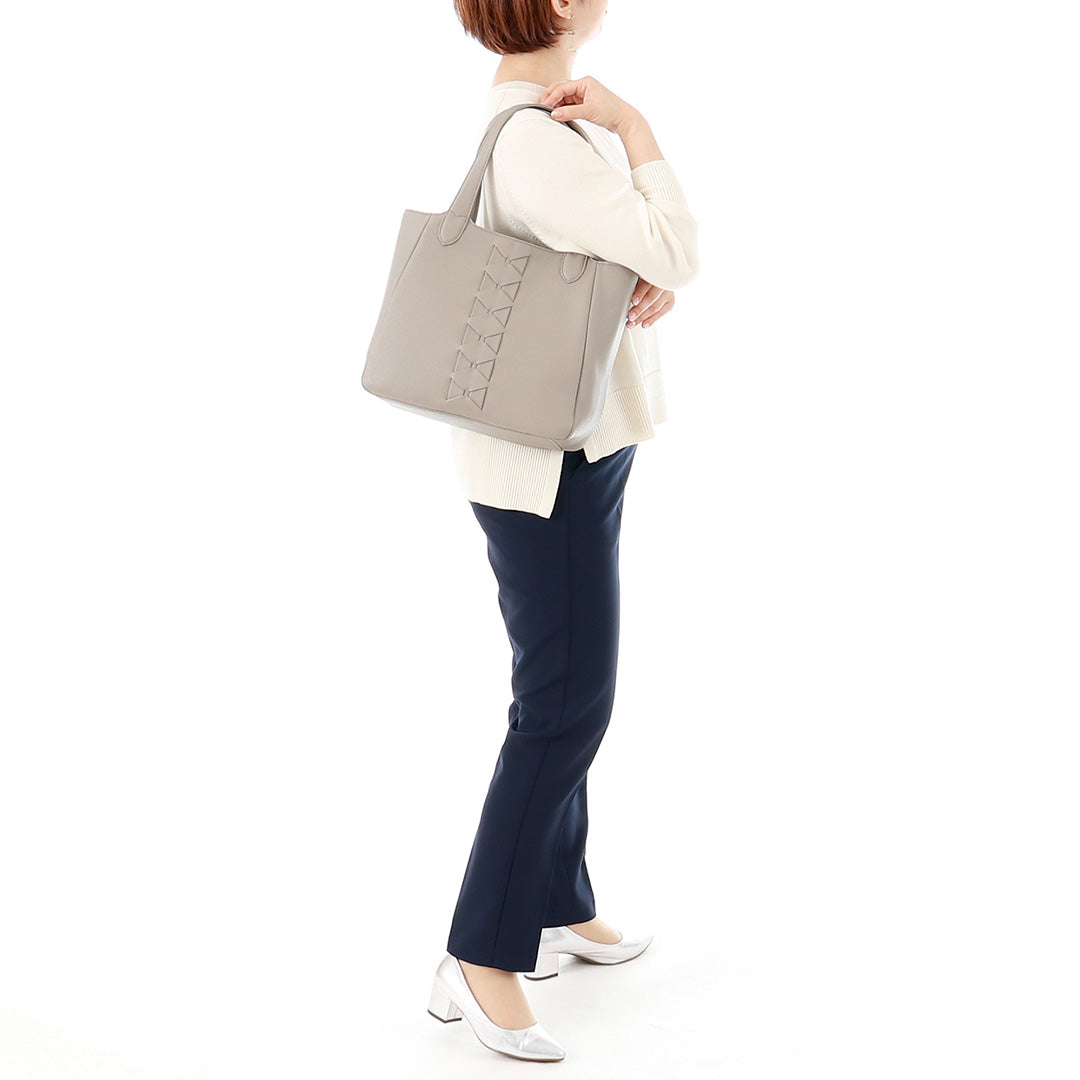 広めのマチ幅で収納力あり、お仕事バッグとしてもおすすめのアイテム。ハンドルは少し幅を広めにしているので、長時間持っても手や肩に負担がかかりにくい仕様になっています。袋縫いでつくられているため、革のやわらかさと相まって程よいふっくら感があり女性らしさを演出します。