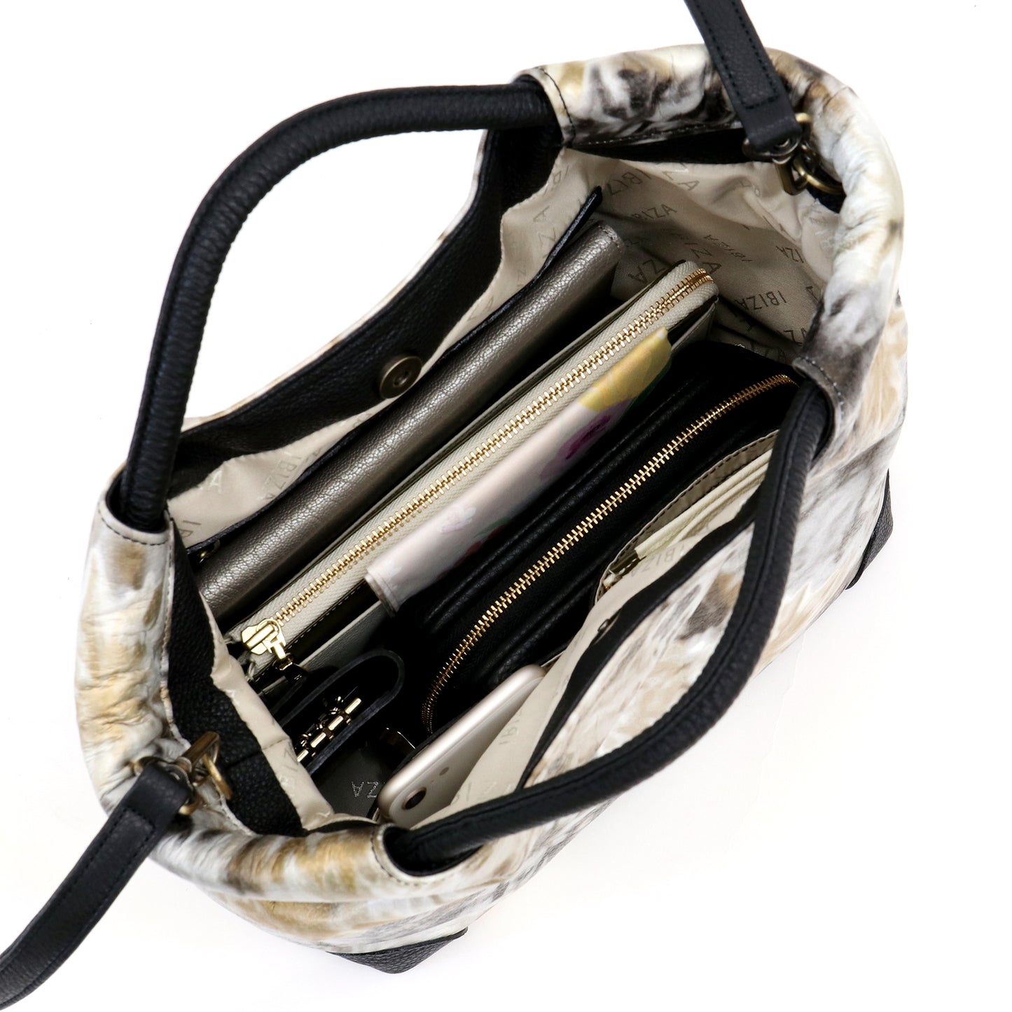 日本が誇る国産レザー『ピッグスキン』に、イビサのルーツでもあるスペインを彷彿とさせる、サフランの花をモチーフにしたイタリアンプリントを施しました。華やかさがありながら、革本来の風合いを感じることができるコレクションです。