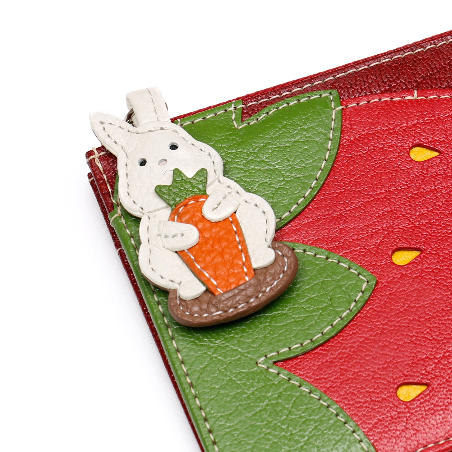 大人の遊び心を満たしてくれるフルータスのパスケースに、新たに色鮮やかなイチゴモチーフが仲間入り。引手には、大きなニンジンを力いっぱい引き抜こうとするウサギの姿をあしらいました。ぐっと力を込めた愛らしい表情にも注目です。果物ごとに異なるストーリーを持つ、アニマルモチーフの引手にもぜひご注目ください。