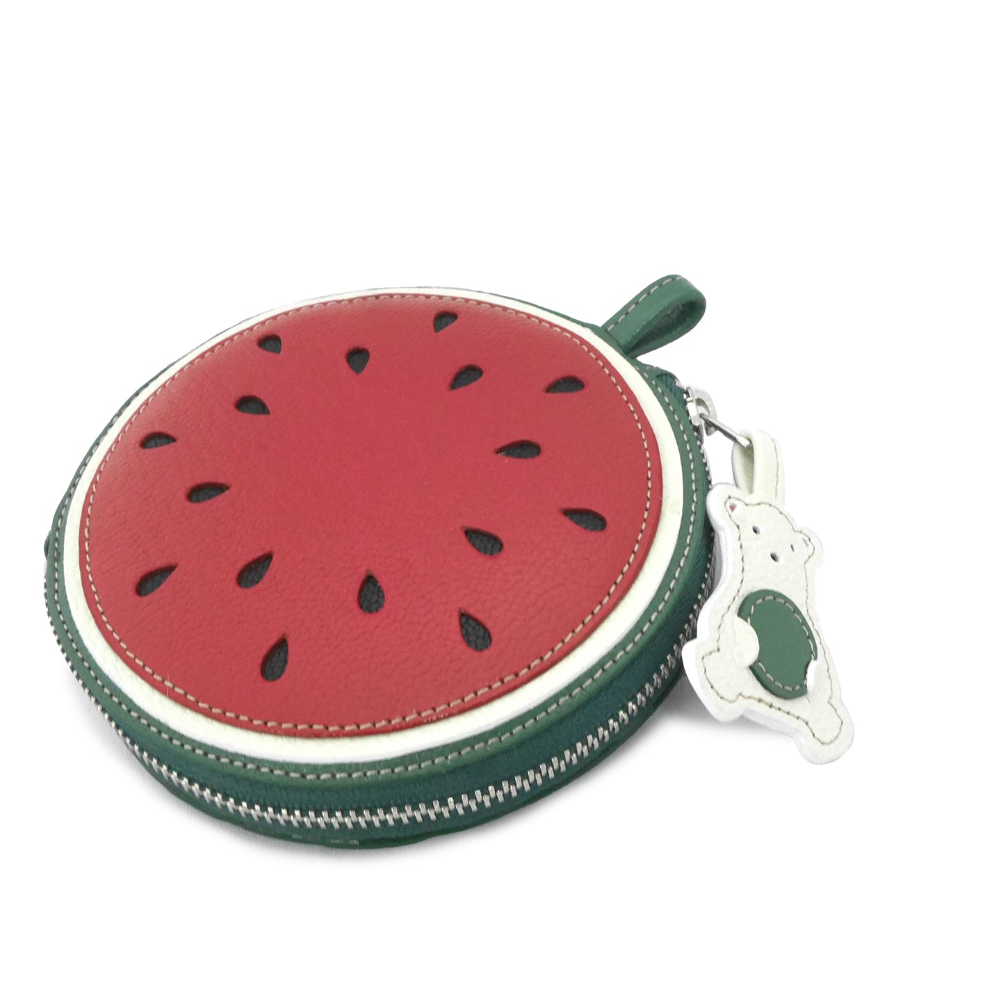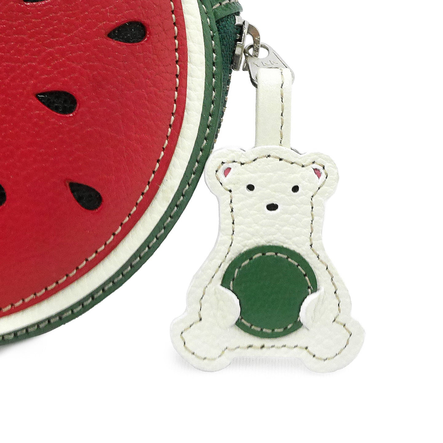 大人の遊び心を満たしてくれるフルータス。ファスナーの引手には丸いスイカを抱えたシロクマ。フルーツによって違う、ひとつひとつストーリーが込められた引手のアニマルたちが、絵本の一ページのような世界観を作り出しています。