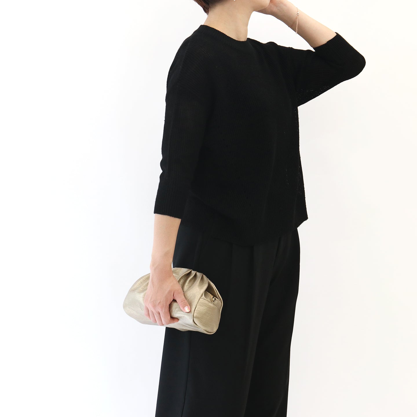 ドレープのような優雅で上品な印象を醸し出すディテールが特徴です。華やかなオケージョンシーンにはもちろん、カジュアルスタイルにさりげないアクセントを加えるアイテムとしても最適。使い込むほどにしなやかな風合いが増す上質な素材を活かしたデザインで、さまざまなシーンで活躍します。