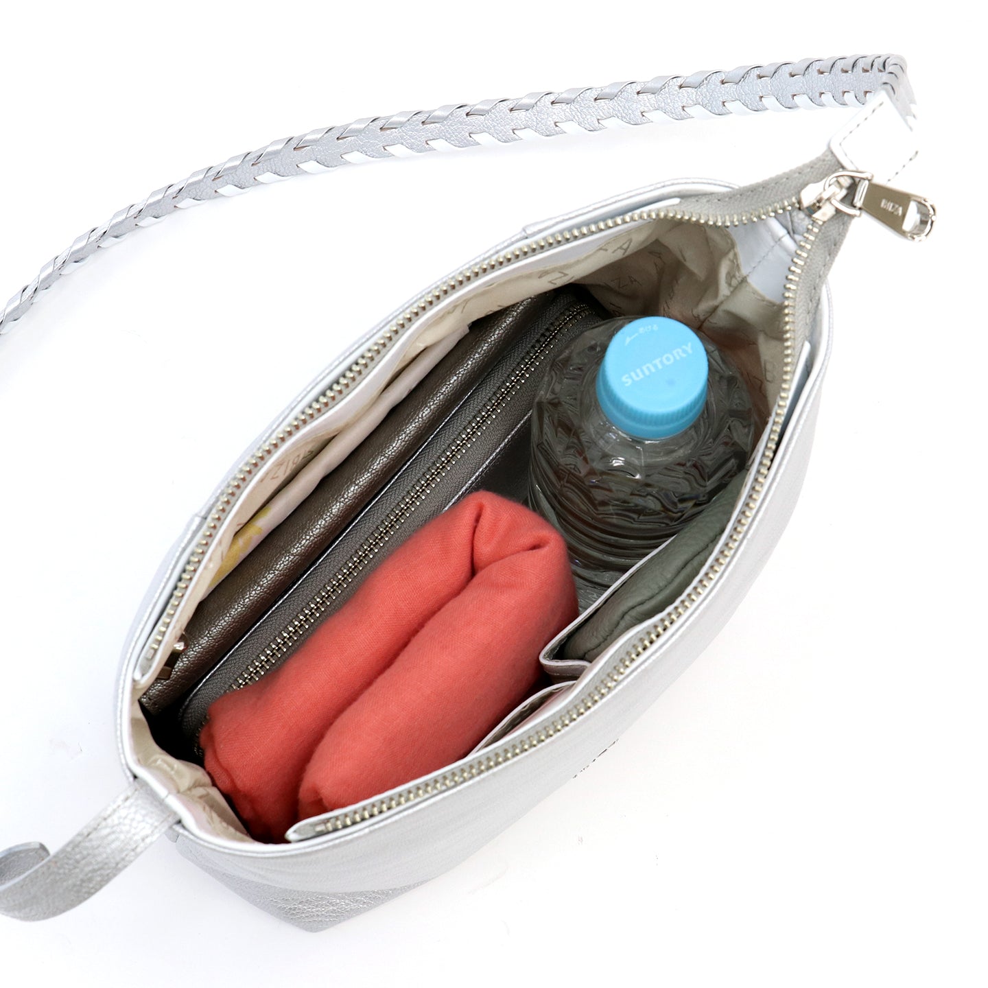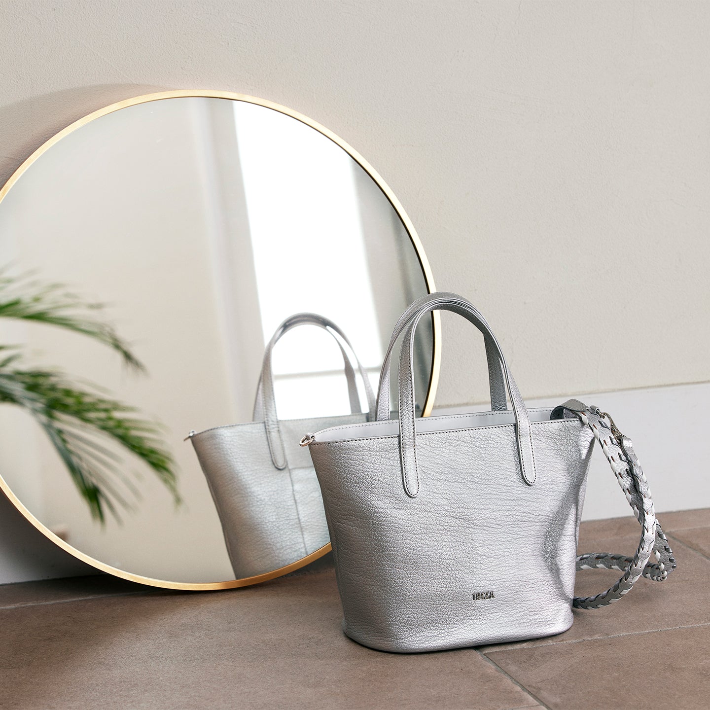 上質なやぎ革の特性を最大限に活かした染色で、エレガントな輝きを実現しました。アクセントのショルダー紐は、ホワイトのレザーとのコンビネーションでIBIZAらしい職人の手しごとを感じていただけます。