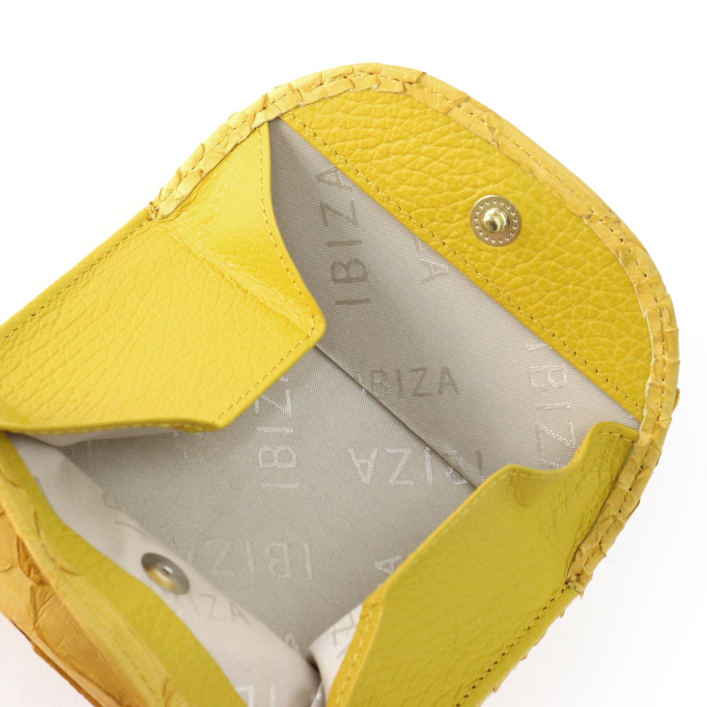 口が大きく開き、小銭をスムーズに取り出せるコインケースが付いています。内側には仕切りのついたお札入れとカード入れが6か所。外にもポケットが1か所と、コンパクトなのに機能面も充実。イビサでもとても人気のあるタイプです
