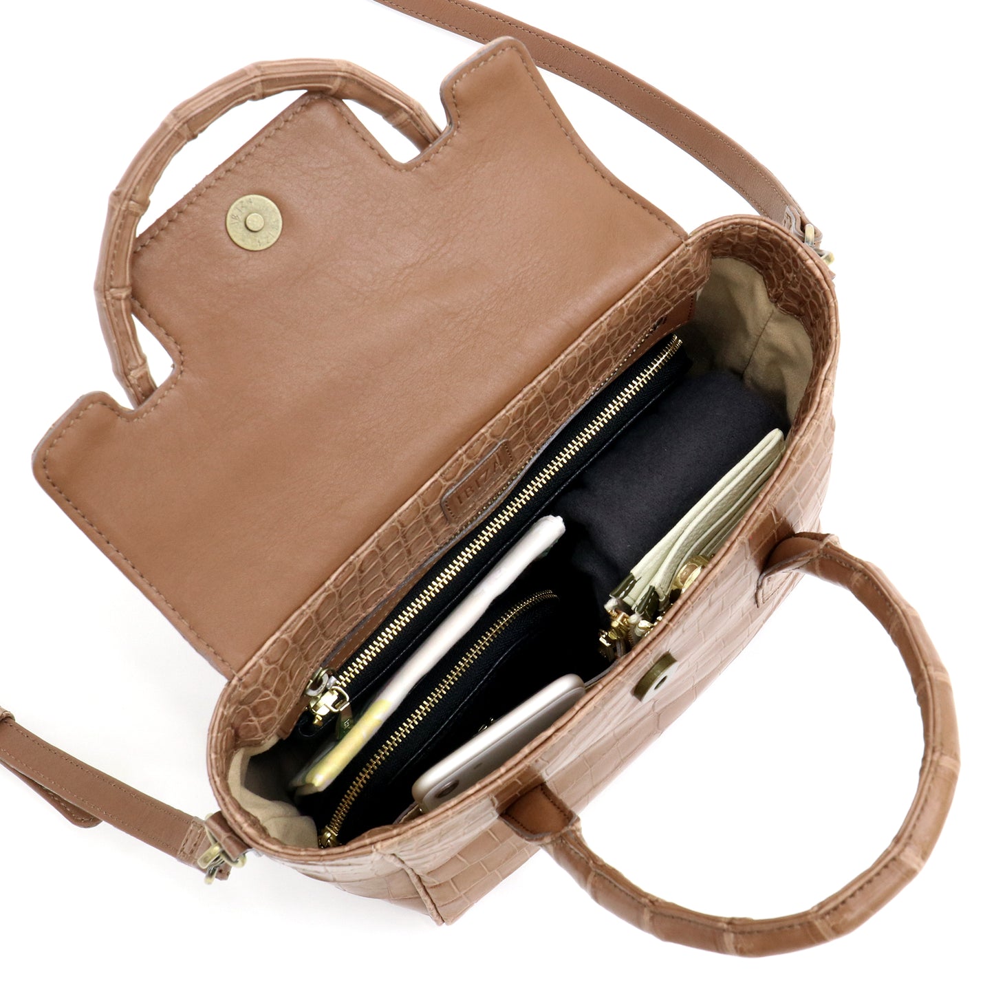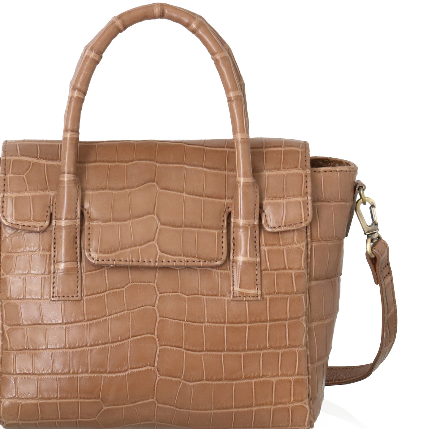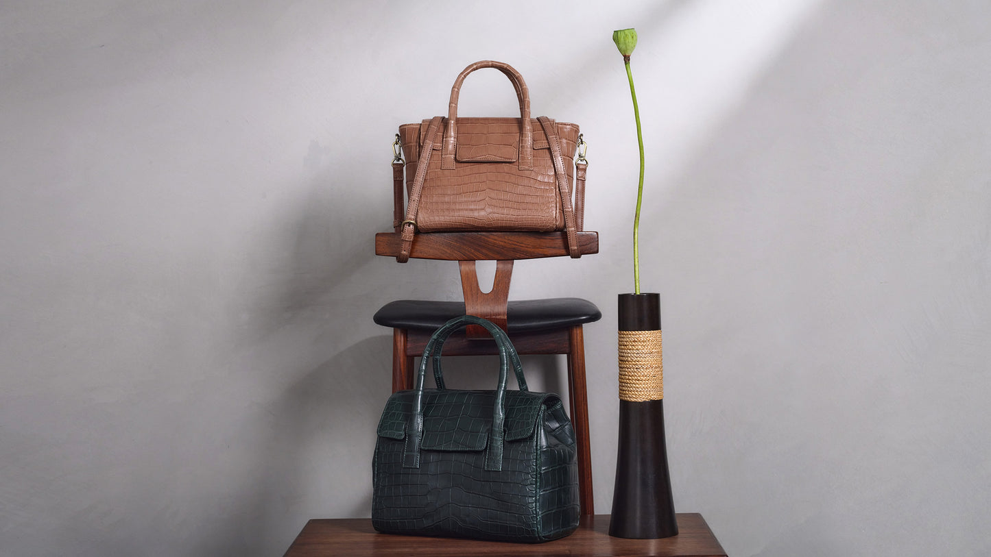 普段使いしやすく、カジュアルにお使いいただける2WAYバッグ。特別な素材を普段のスタイリングに取り入れていただけるようにシンプルなデザインにしました。ラフなスタイルでもお持ちいただけるようかぶせを付け、バッグを開けるたびにクロコダイルの持つ自然な艶をお楽しみいただけます。付属のショルダーストラップや、内側の口周りにもクロコダイルを乗せ高級感を演出。見えないところまでこだわることで特別感のあるバッグに仕上げています。ショルダーストラップを外し左右のマチを内側に入れることで、フォーマルな印象を与えてくれます。