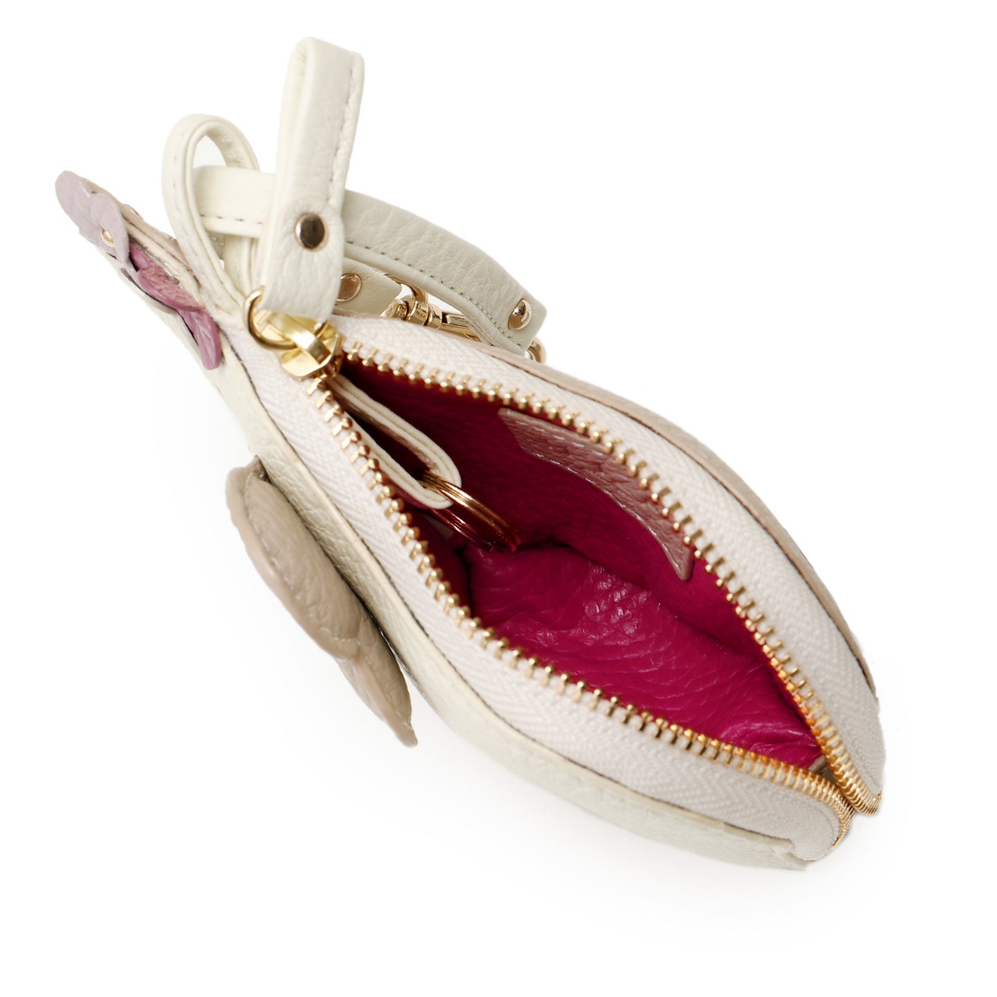 内側は、開くと気分が明るくなるようなピンクの牛革で仕立てました。ネイルを傷つけないようやわらかめの二重リングが付いているので、キーケースとしてもお使いいただけます。小物入れとしてはもちろん、大きめのバッグに付けてチャームとしてもお楽しみいただけるアイテムです。