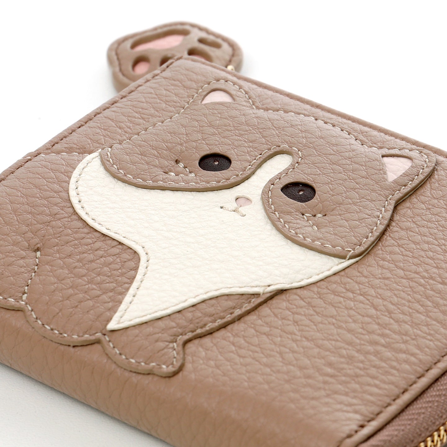 くりっとした目でこちらを見つめる子ネコ。ちょこんとそろえた短い前足ところんとしたフォルムがデザインポイントです。かわいさの中にも機能性を備えたL字ファスナー財布は、開閉がスムーズで中身を一度に確認できます。お札を折ってしまえるので、コンパクト財布として便利にお使いいただけます。ぷにぷにしたネコの肉球を引手につけ、遊び心のあるデザインに。アニマルモチーフも可愛らしさを全面に絶妙なバランスで配されています。