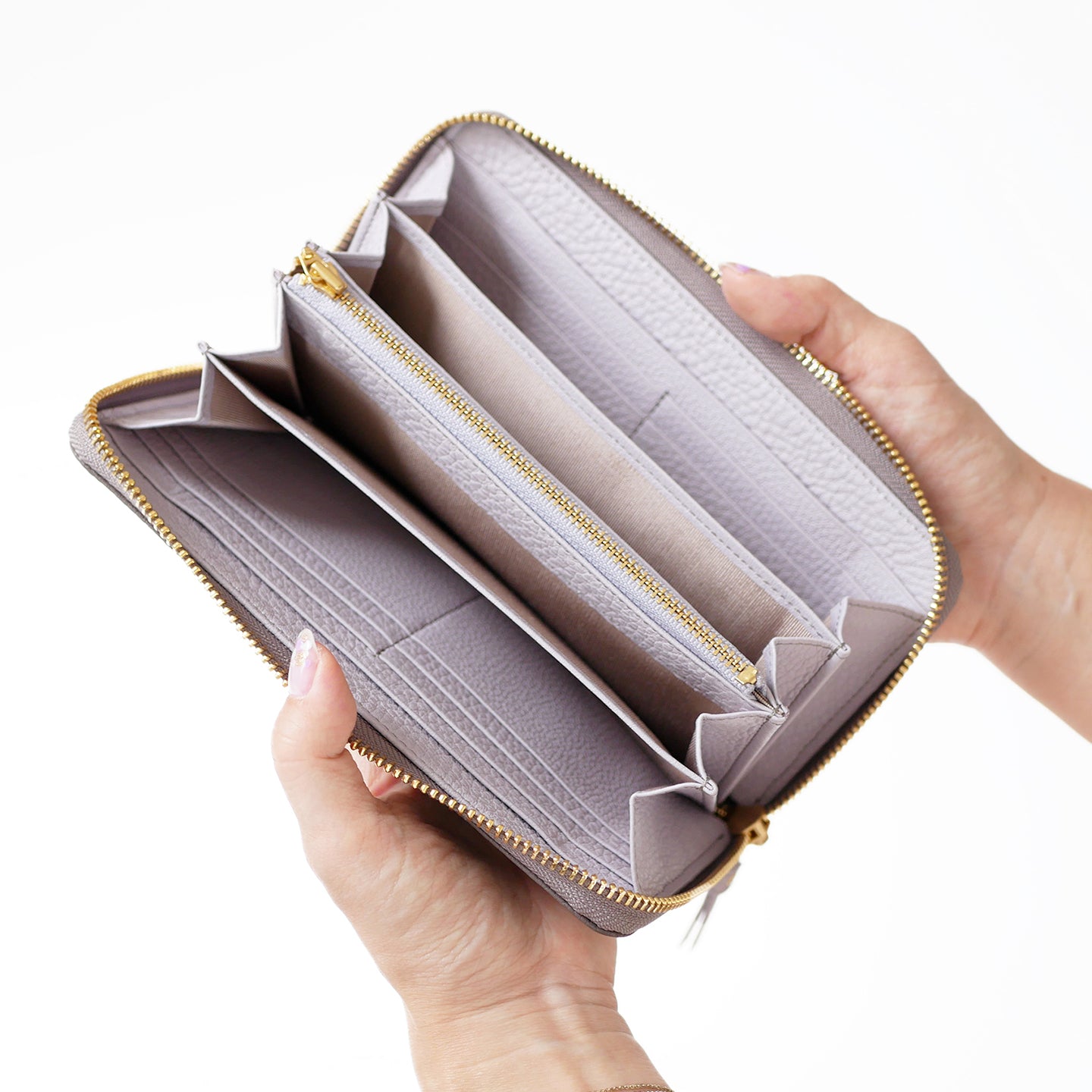 三方をファスナーで完全に閉じることが出来て、たっぷり収納できます。大容量のコンパートメントやファスナー付きコインポケット、複数のカードスロットを備えた実用性に優れたアイテム。ファスナーを開くと全体がよく見え、支払いやお会計がスマートに行えます。