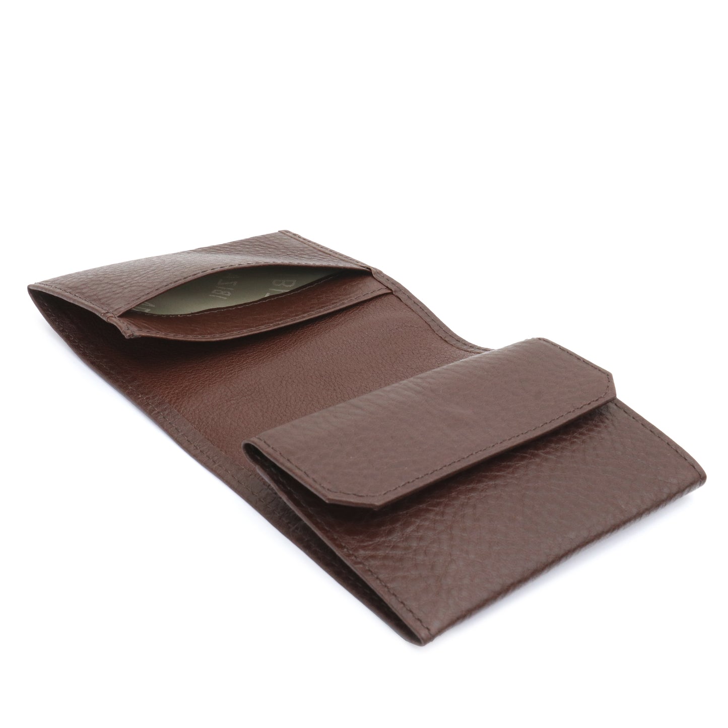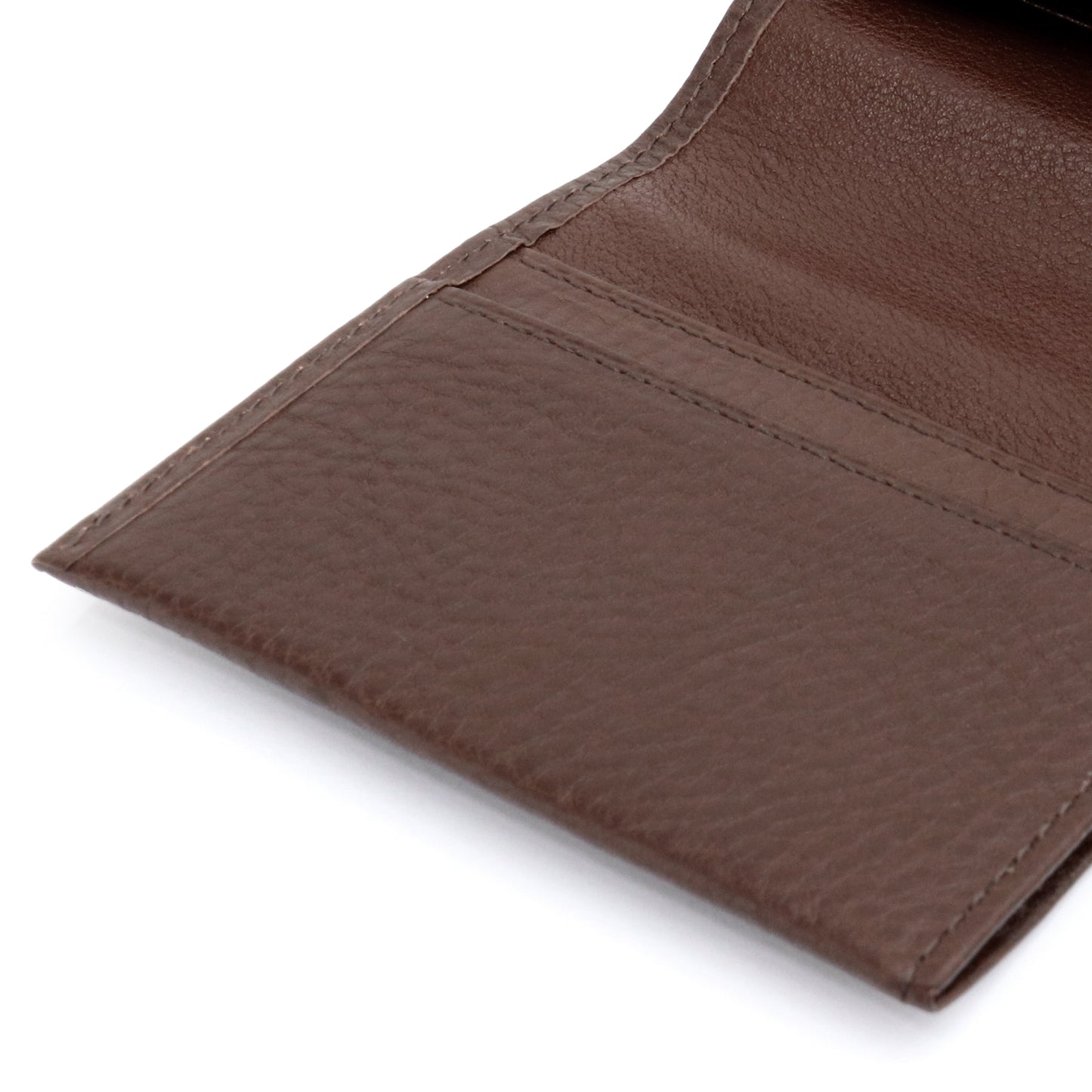 シャツなどの胸ポケットに入れてもかさばらないコンパクトサイズでありながら、札入れ、小銭入れ、カードポケットを備えた二つ折り財布です。スムーズに使用できる優れた機能性で、大人の男性のスマートさを演出します。