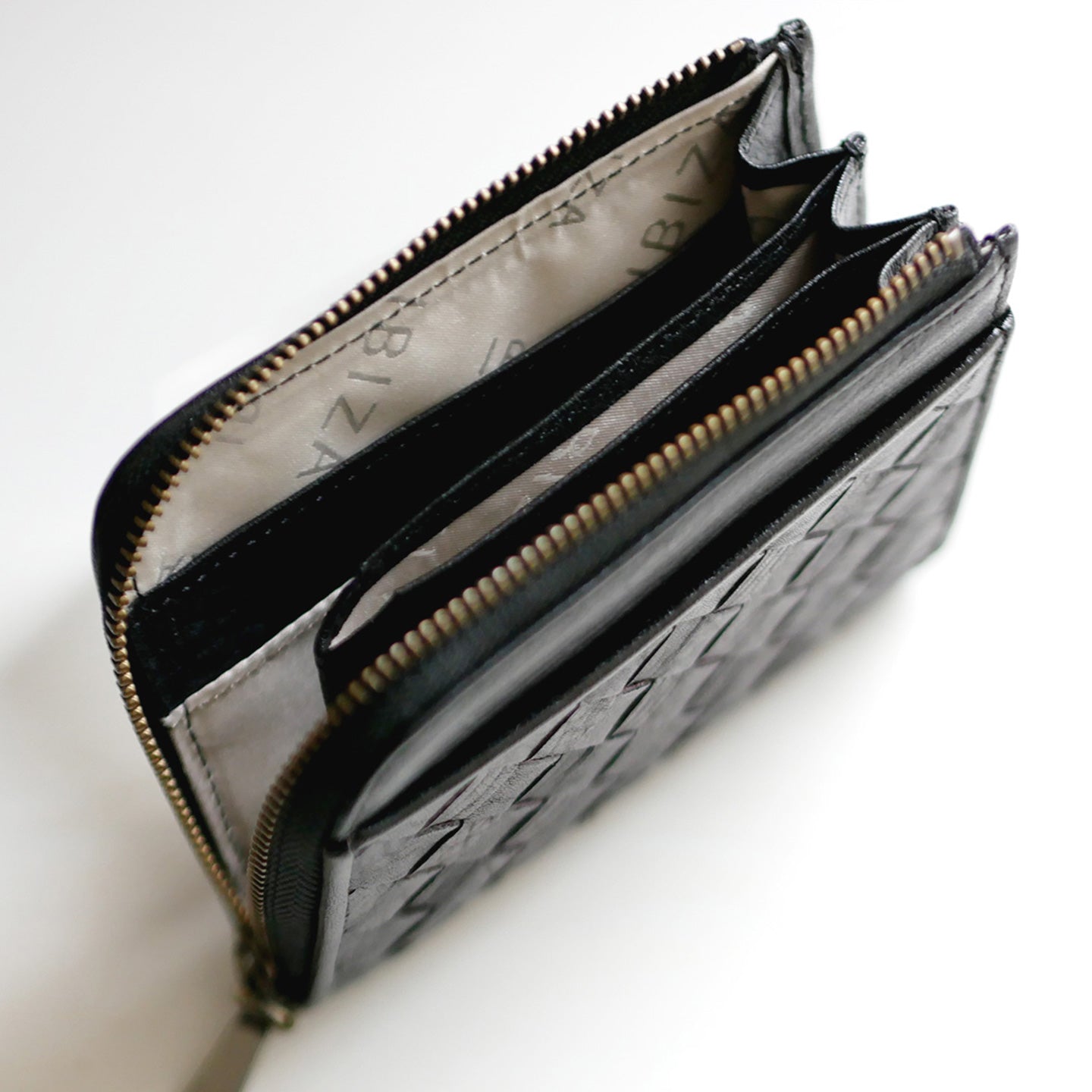 必要最小限に抑えたい方におすすめのL字ファスナー財布。背面にはよく使うカードなどを収納できるオープンポケットを配しました。コンパクトサイズなので、洋服のポケットや、小さめバッグの狭いすき間にもすっと収まります。