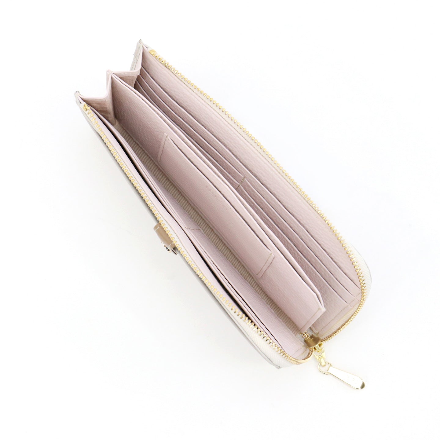 ファスナーの開閉がスムーズなL字ファスナー長財布。小銭やお札など中身が一度に確認できるので使いやすくとても便利です。前面と背面には、よく使うポイントカードなどをさっと取り出せるようオープンポケットを配しました。すっきりとした薄型ながらカードポケットも充実しているので、スマートで収納力のあるお財布をお探しの方におすすめのデザインです。