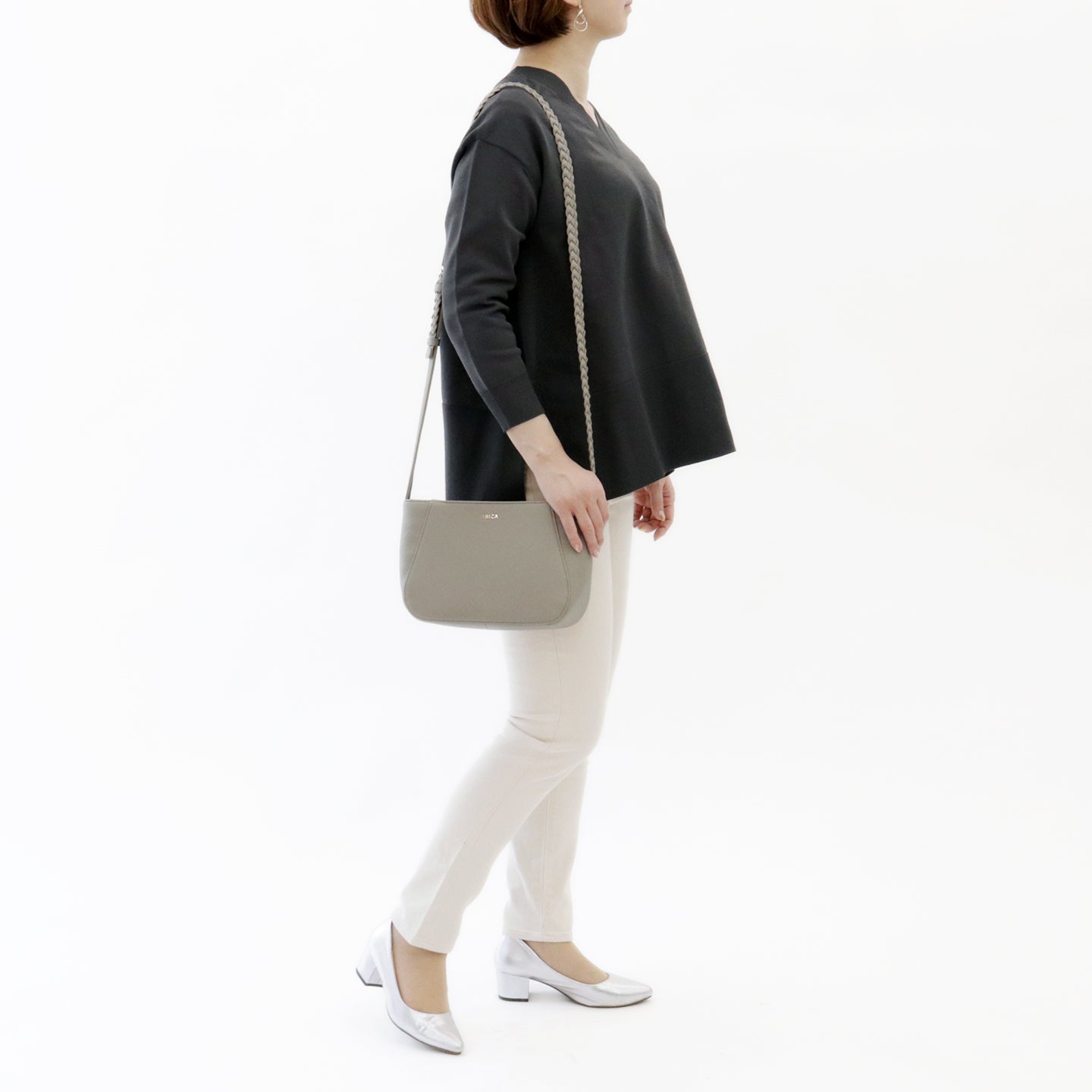 革の程よい艶感と天然のシボ感がコーディネートを上質にみせてくれるショルダーバッグ。長時間肩にかけていても痛くなりにくいように工夫を施したメッシュのストラップと、マチ幅が広くつくられているので見た目以上に物が入るのもうれしいポイント。財布や携帯電話などいつも持ち歩くアイテムはしっかり収納できます。