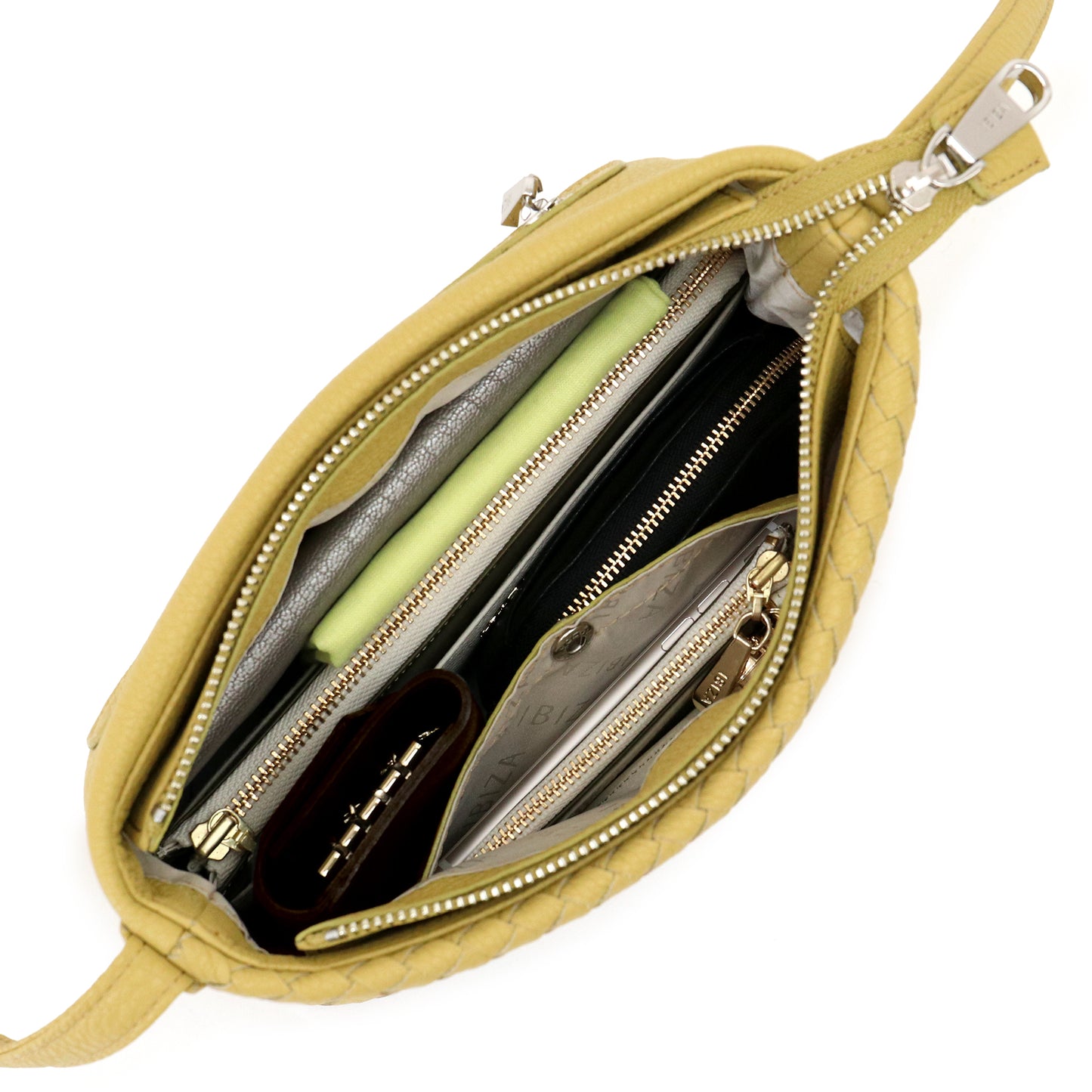 中央のメインファスナーを中心に、前後にあおりポケットを配しスマートフォンやパスケースなどすぐに取り出したいものを収納できるデザインです。ショルダーストラップはお好みの長さに調節が可能です。