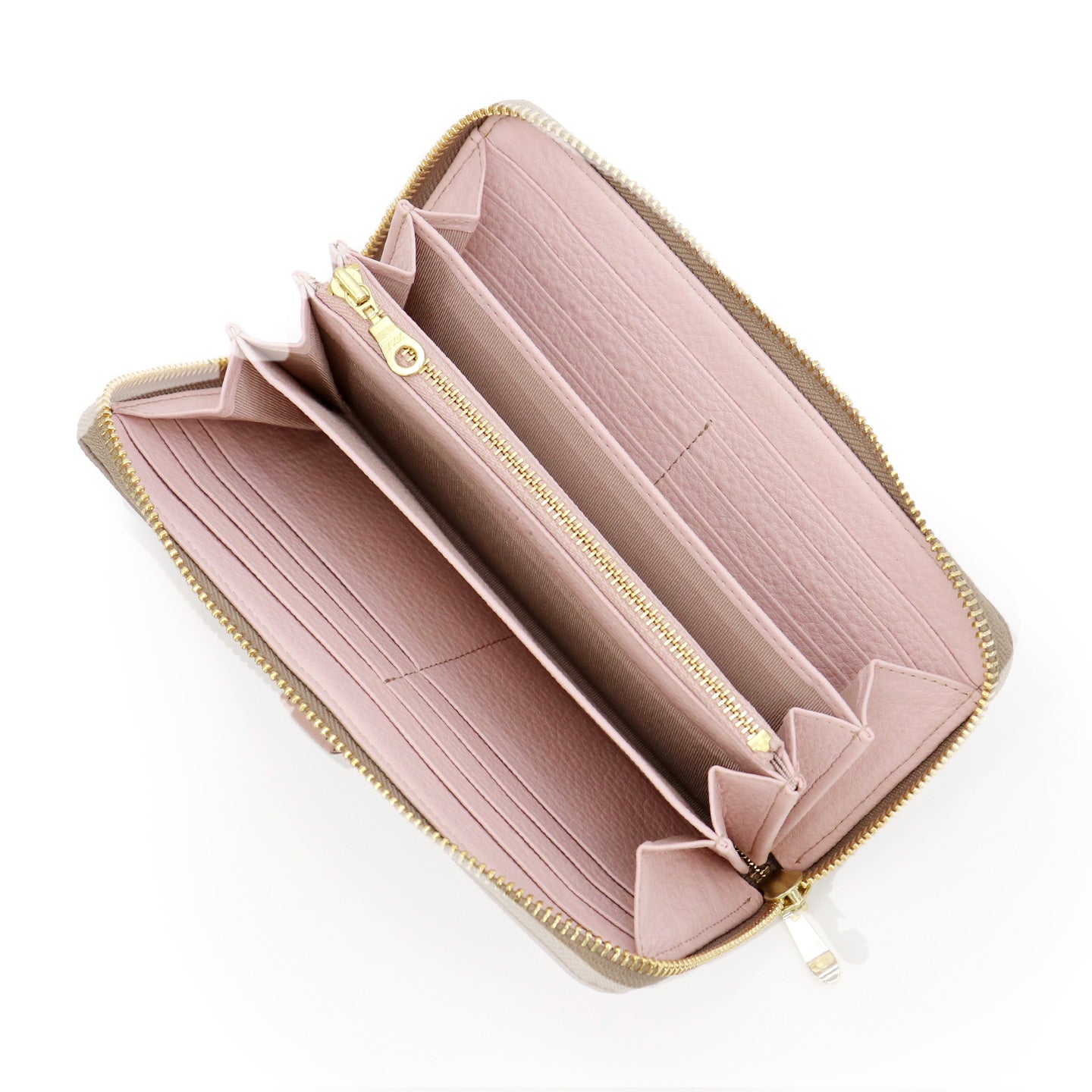 三方をファスナーで完全に閉じることができる長財布。ファスナーを開くとひと目で中身を見渡せるので、必要なものをすぐに取り出すことができ、お会計もスムーズに行なえます。仕切りやカードポケットが充実しているので、安心してたっぷり収納できます。前面と背面には、よく使うポイントカードなどをさっと取り出せるようオープンポケットを配しました。たくさんの方にご愛用いただいている人気の型です。