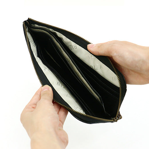 ファスナーの開閉がスムーズなL字ファスナー長財布。小銭やお札など中身が一度に確認できるので使いやすくとても便利です。前面と背面には、よく使うポイントカードなどをさっと取り出せるようオープンポケットを配しました。すっきりとした薄型ながらカードポケットも充実しているので、スマートで収納力のあるお財布をお探しの方におすすめのデザインです。
