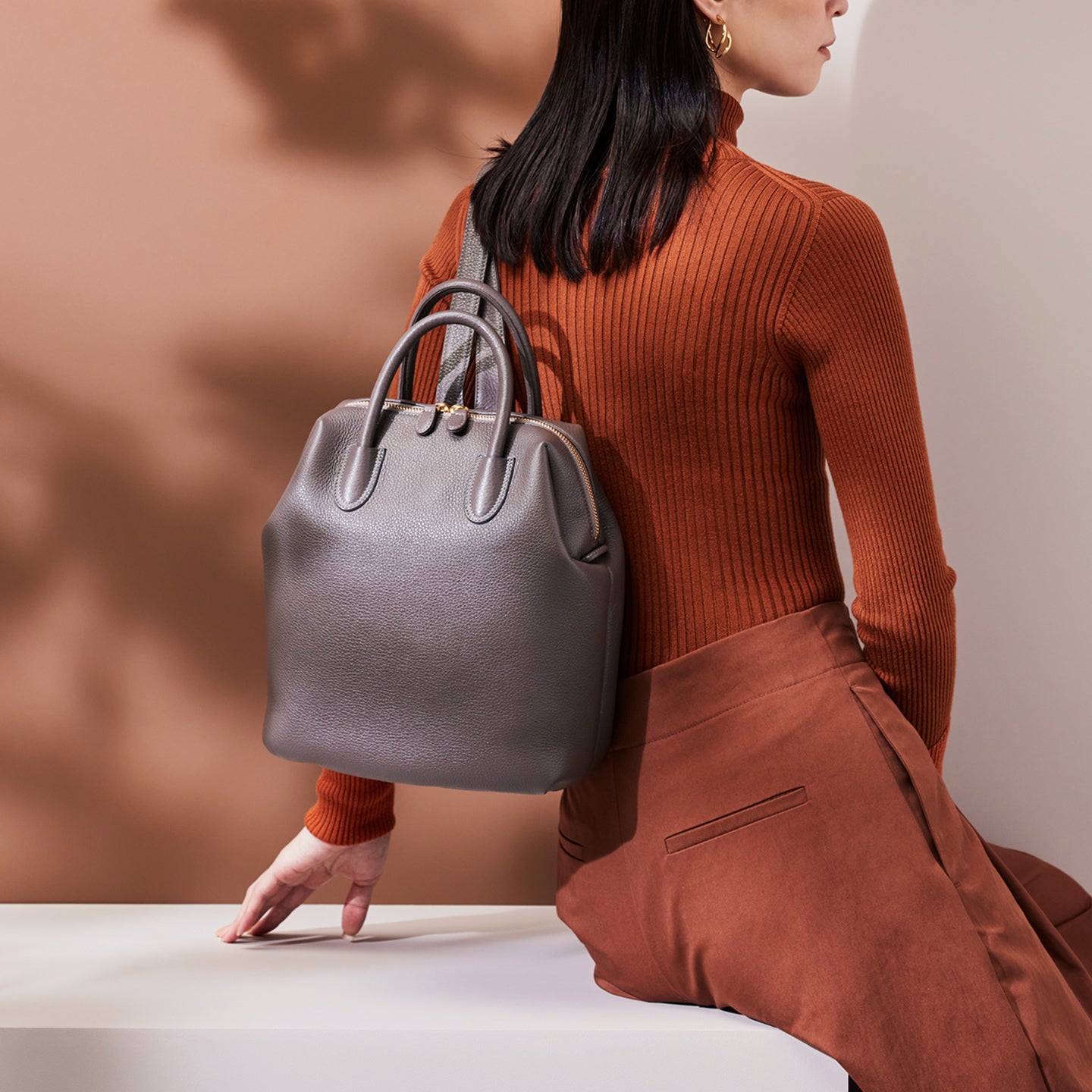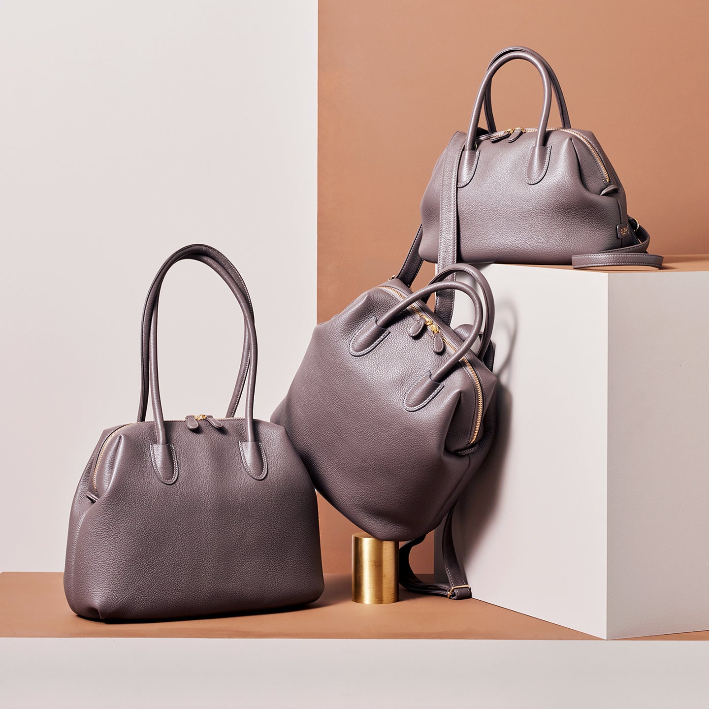 シーズンテーマをダイレクトに表現した新作バッグ「Redonda 」。特徴は目にするだけでつい手を伸ばしたくなる、ふっくらとした丸みのあるフォルム。きめ細かいシボの柔らかなシュリンクレザーを用い、金具を極力省いてデザイン。またIBIZAが長年得意とするソフトなハンドルを用い、握った感触も柔らかに。クラフト感のあるステッチや控えめなロゴなど持つ人が癒されるデザインを考え抜きました。