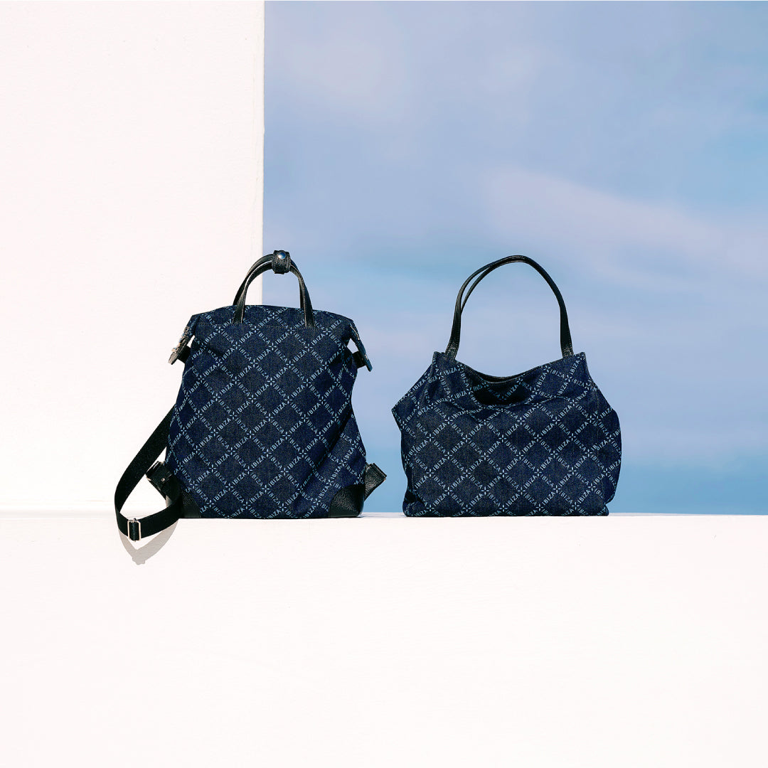 ラフで軽やかなデニムの風合いが心地よい「バケーロ」。世界的にも高く評価される岡山県産の高品質なデニムに、イビサロゴのチェック柄とオリーブの花のモノグラムをレーザー加工であしらった、オリジナルテキスタイルを使用しています。薬品や水をほとんど使わずに模様を描く「レーザー加工」は、従来のデニム加工に比べて環境にやさしいエコな技術としても注目されており、その繊細で奥行きのある表情が、このシリーズならではの魅力を引き立てます。