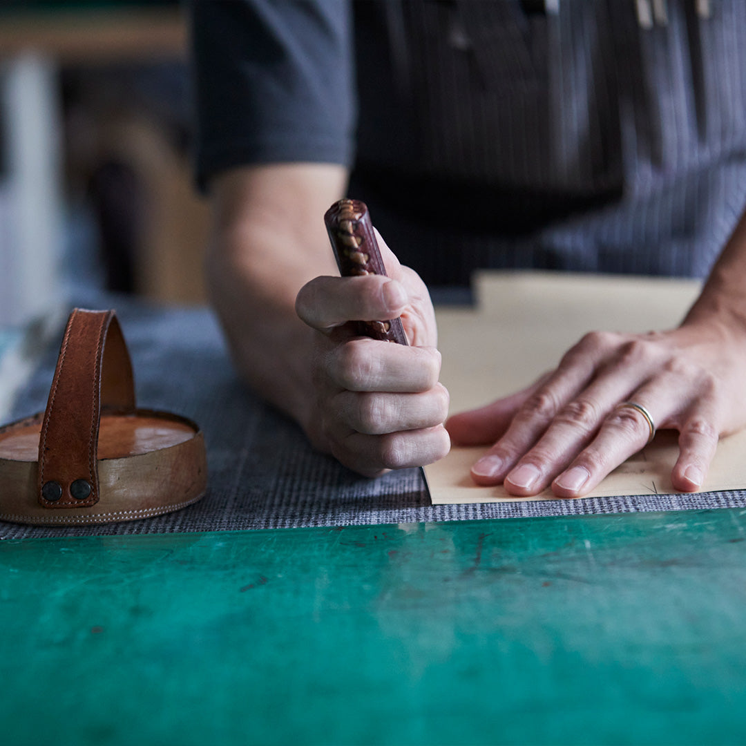 ものづくりに関わる立場として、革を無駄にしない精神はもとよりいいものは大切に、次世代へ長く受け継いでほしいと考えるイビサ。革の染め直しから、パーツの取り替え、ライナーの貼り直しなどの修理にも対応しています。