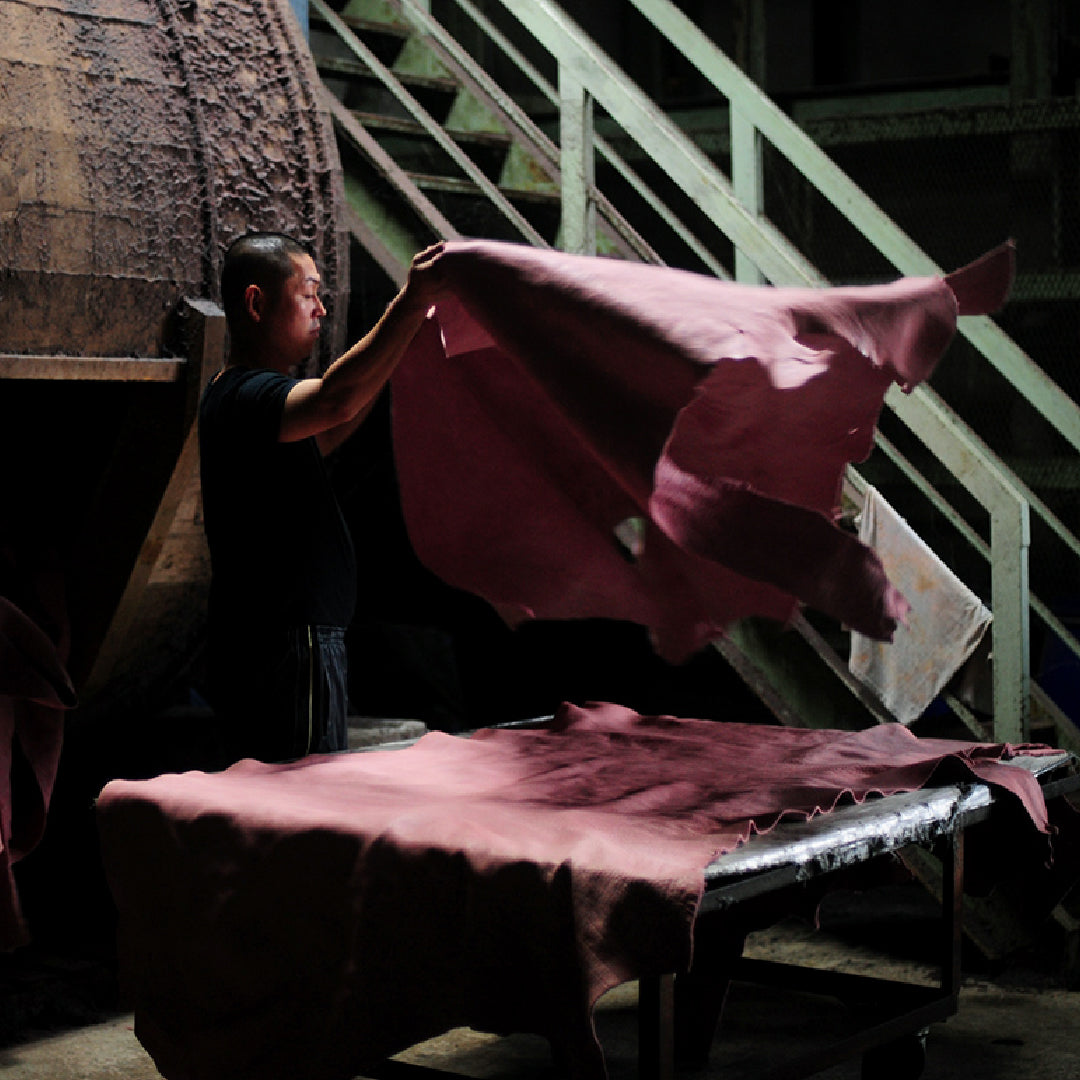 革は、日本有数の皮革産地・兵庫県たつの市の老舗タンナー「中嶋皮革工業所」とともにゼロから開発した、オールジャパンメイドのオリジナルレザーを使用。前作からさらに改良を加え、仕上げの最後に行う「バタ振り」の工程を増やすことで、張りを残しつつ、しなやかな質感に仕上げました。
