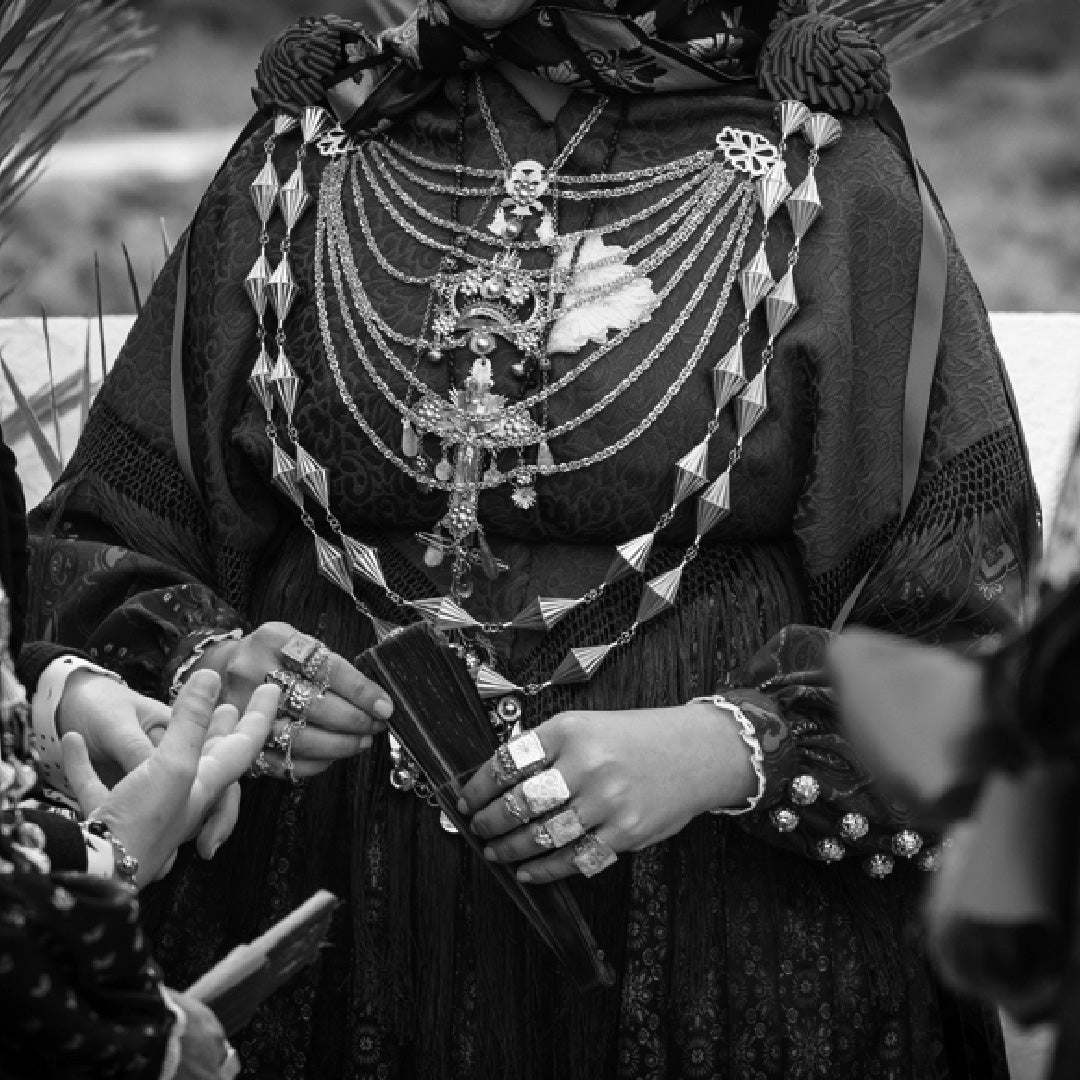イビサ島に伝わる「エンプレンダーダ」と呼ばれる装飾品は、婚礼や祭礼など人生の節目に身に着けられ、胸元を華やかに彩ってきた壮麗なアクセサリー。その中でも特徴的な菱形を連ねたネックレスに着想を得て、アクセソリオは誕生しました。