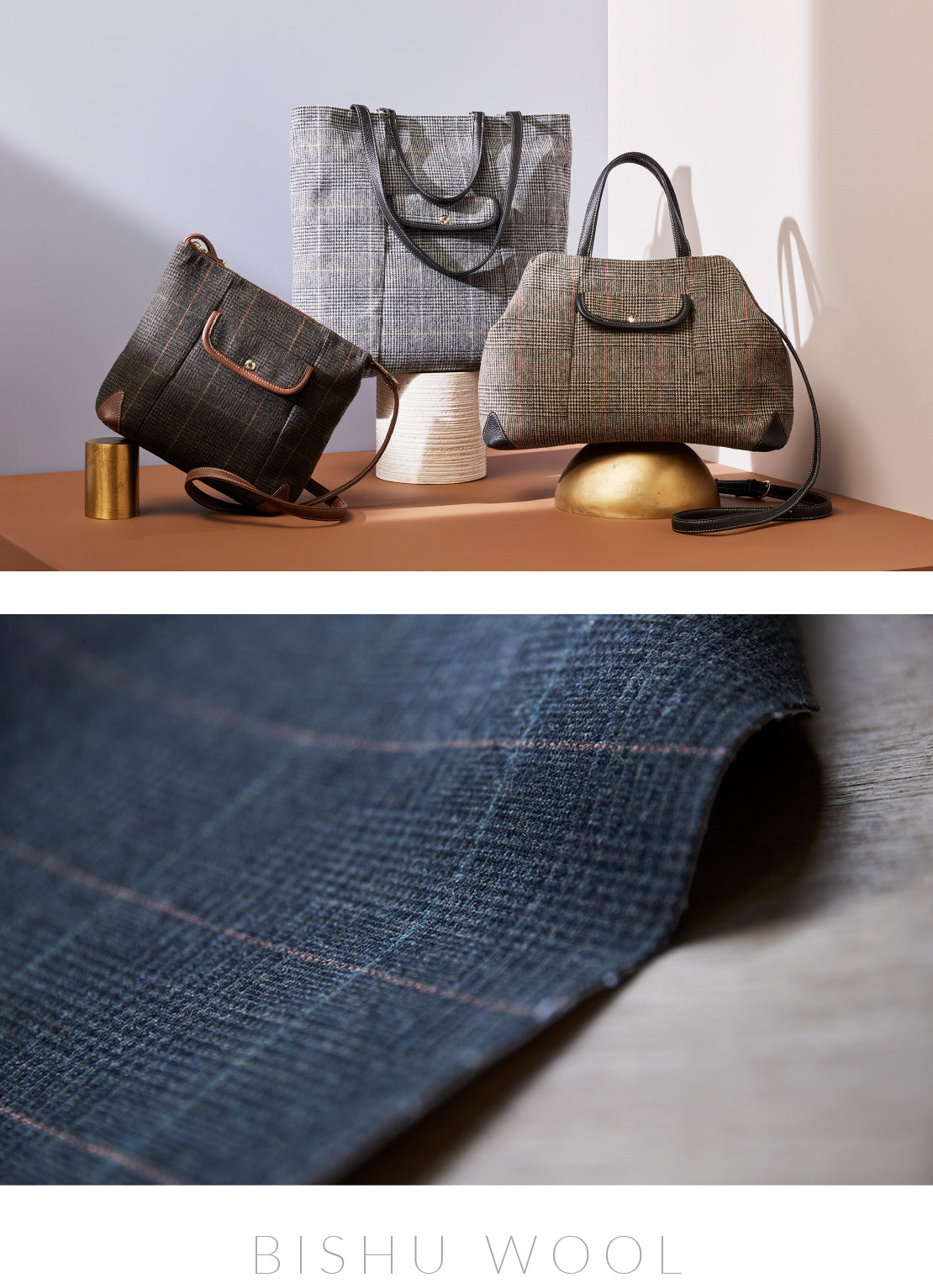 尾州のウールやファー、レザー── 素材のあたたかさと、職人の手から生まれるクラフトの美しさが響き合います。
