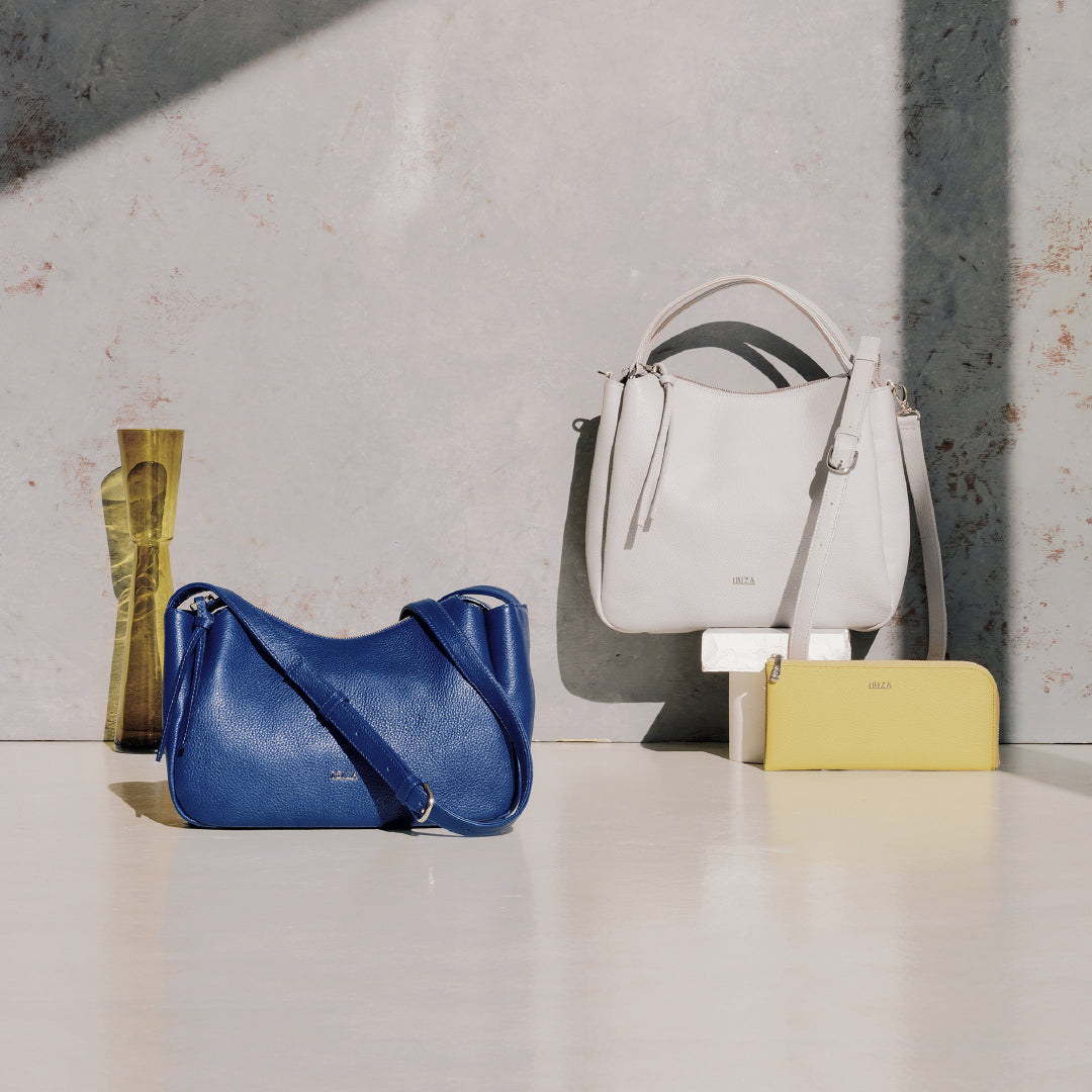 地中海の透き通る青を映した、清涼感あふれるカラー。リゾート地としてのイビサの解放感をバッグに込めました。