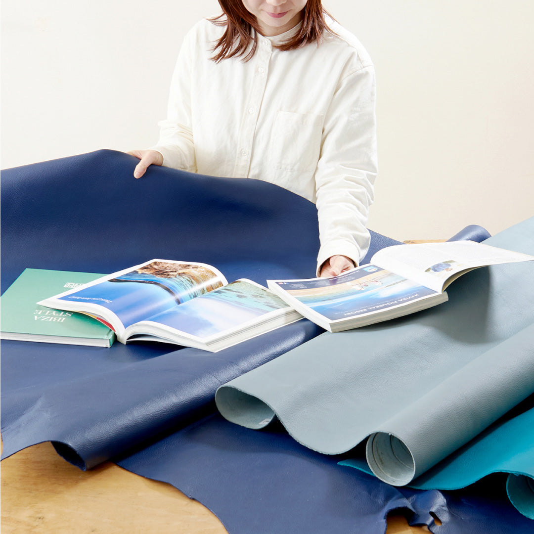 タンナーの職人と何度も試作を重ねて生み出したオリジナルカラーは、イビサだけの特別な色合い。イビサ島の空気や光のきらめき、それぞれの色が紡ぐイメージを感じていただけたら嬉しく思います。