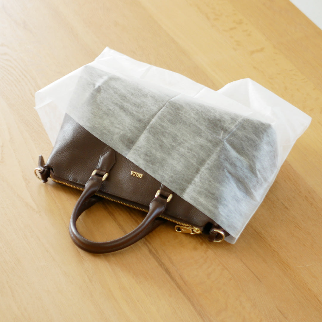 バッグは不織布の袋に入れ、風通しの良い場所で保管します。カビの発生を防ぐため、押入れなどの密閉された場所は避けましょう。