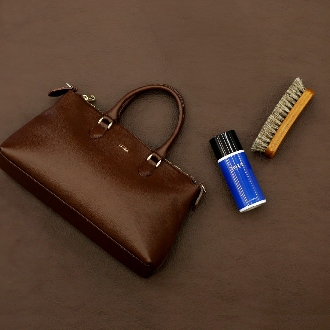 革本来の自然な艶がよみがえり、その後で軽くブラシをかけると、艶がさらに引き立ちます。