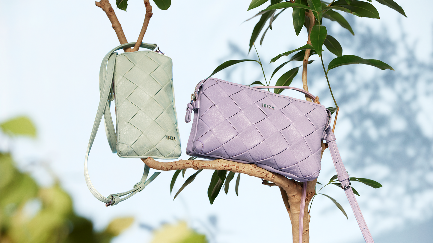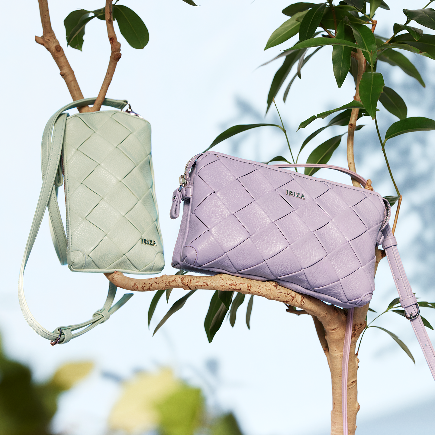 装いに花を添えるような軽やかなラベンダーとペールグリーンのレザーを丁寧な手仕事でメッシュに仕立てたコレクションです。
