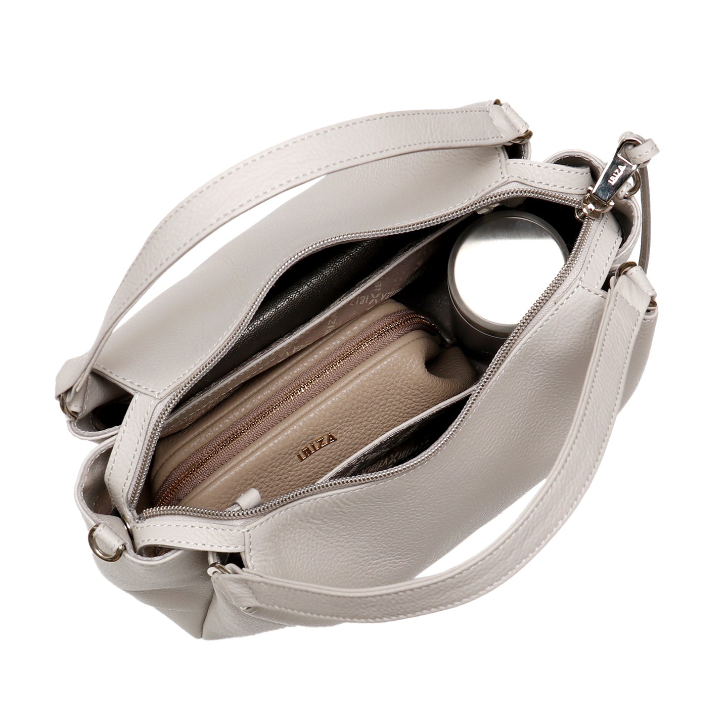 見た目の美しさだけでなく、毎日心地よく使える細やかな機能にもこだわりました。ファスナーには、開閉がスムーズでストレスの少ないものを採用し、背面にはスマートフォンやパスケースなど、さっと取り出せる便利なファスナーポケットを配置。メイン収納には2つのオープンポケットを備え、細かなものもきちんと仕分けできるので、バッグの中がいつでもすっきり整います。