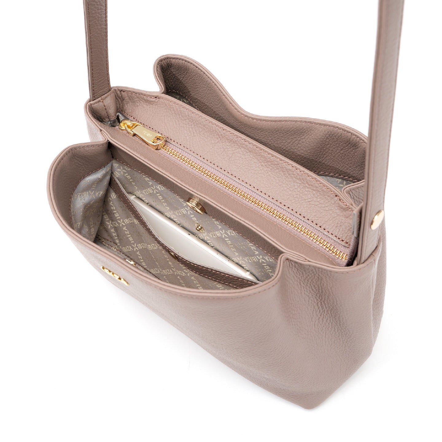 ふんわりとしたシルエットも、適度なハリを備えたレザーがフォルムを美しく保ち、上品な印象に。