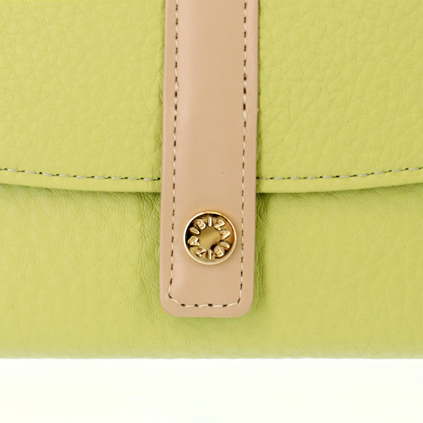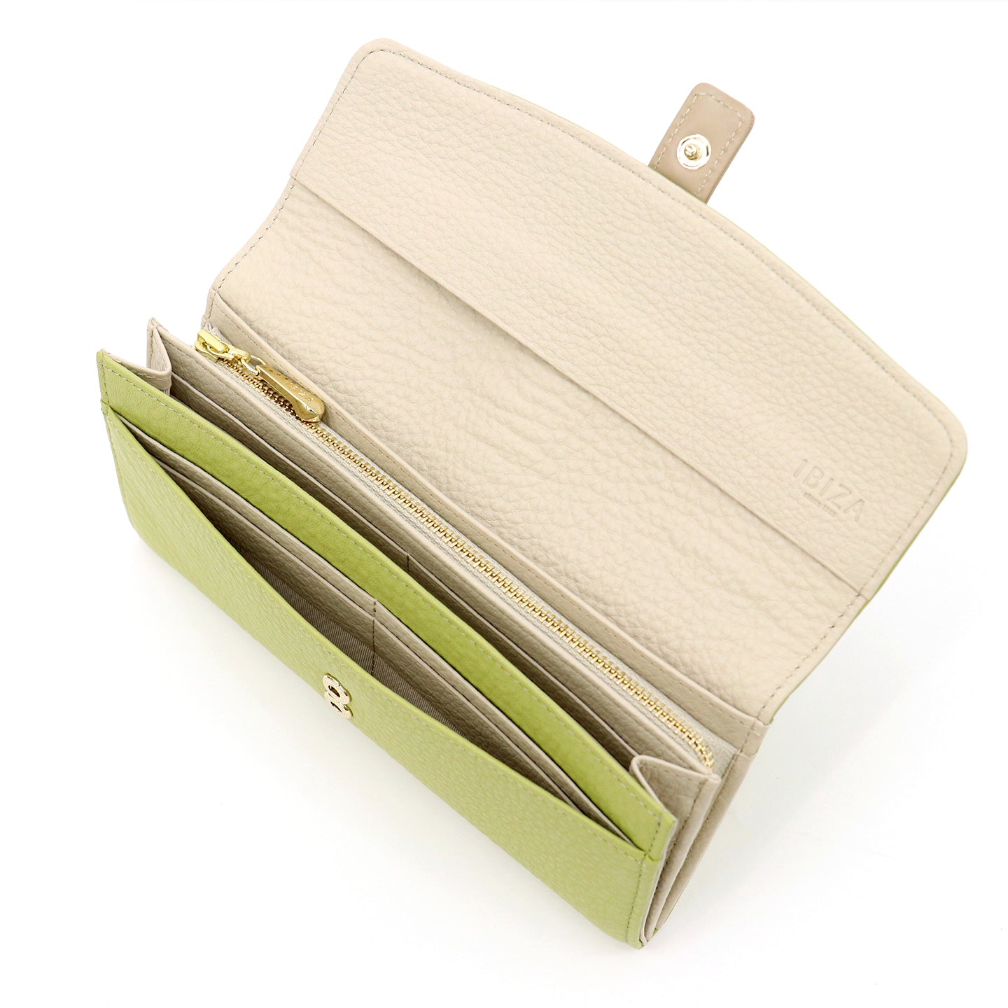 スリムな見た目ながら大きく開いて中身が見やすく、たっぷりとした収納力を備えたかぶせタイプの長財布。よく使うポイントカードなどは、さっと取り出せるよう背面のオープンポケットへ。財布内側のカードポケットも充実しているので安心の収納力です。厚み調整ができるようにホックボタンを二段にしています。
