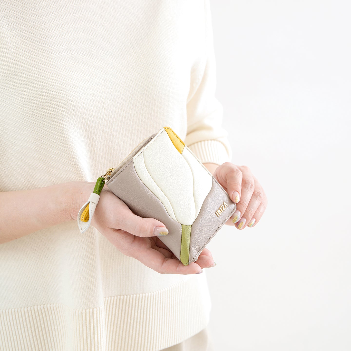 やわらかく重なる花弁や、しなやかに伸びる茎のライン。その繊細なフォルムを、革の表情を生かしながら丁寧に表現しました。まるで花を手にしたときのような、やさしい幸福感を日常にそっと添えてくれるシリーズです。