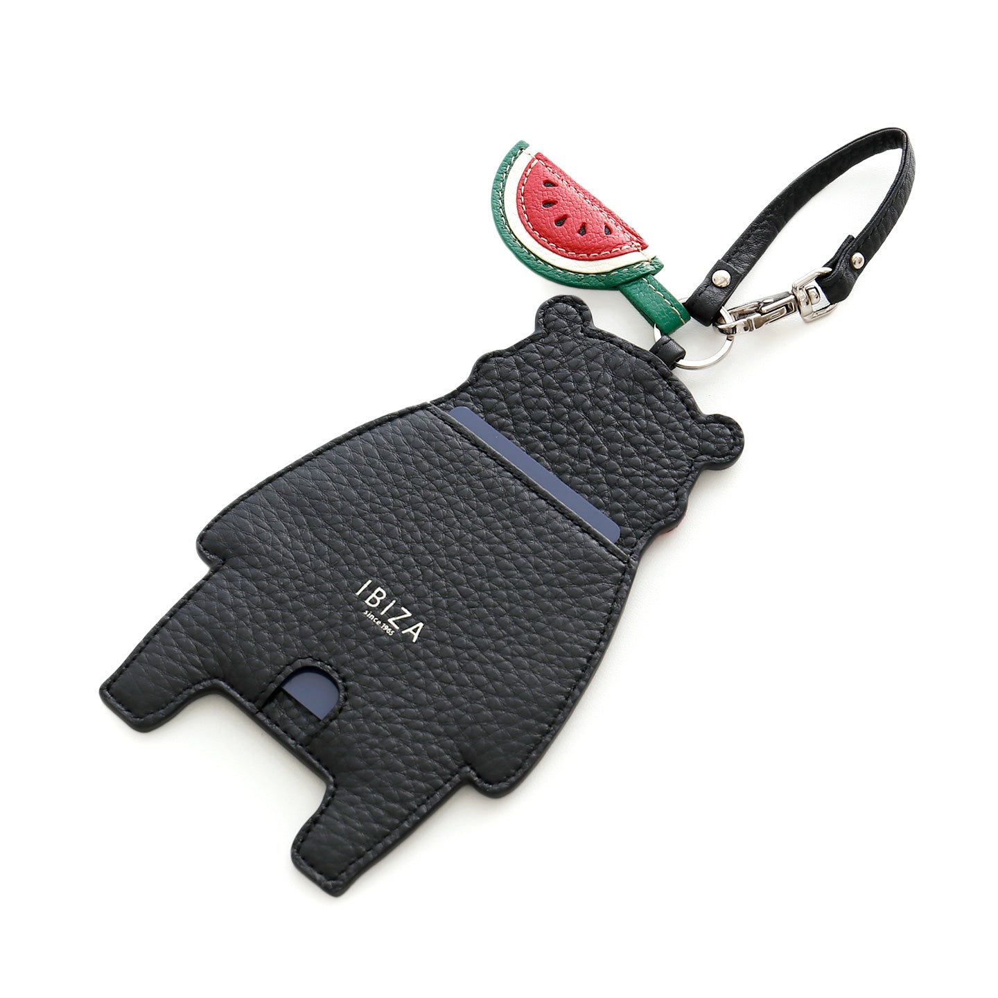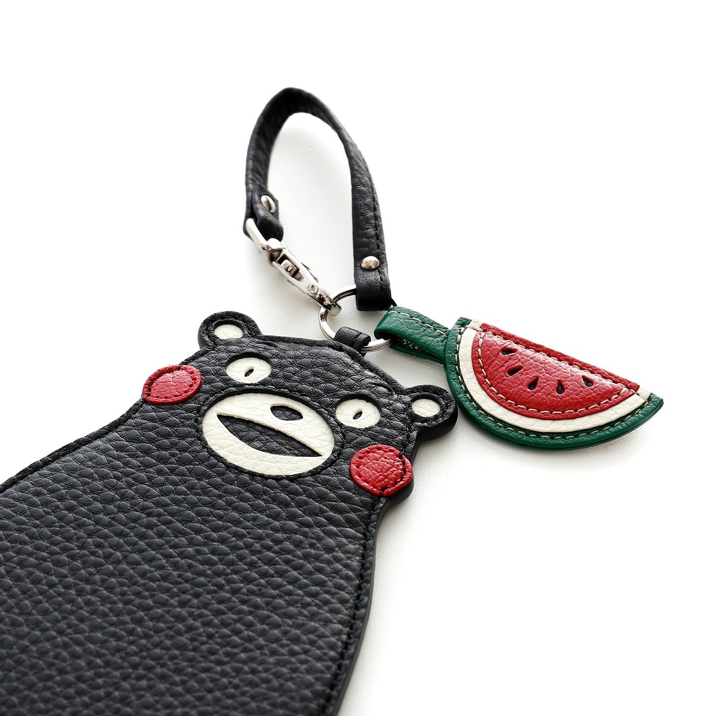 くまモンのフォルムをそのままデザインしたパスケースは、使うたびに笑顔になる可愛らしさ。熊本の名産品の一つ、「スイカ」のチャームがアクセントになっていて、遊び心がさらにプラスされています。