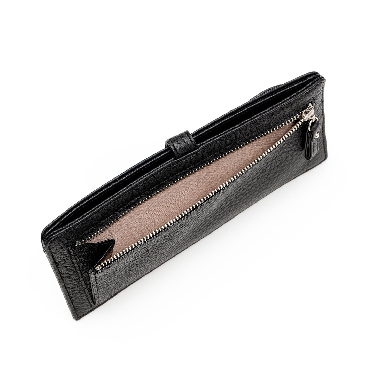 中央のポケット内にはカードポケットを備え、通帳やキャッシュカードなどを整理して収納できるマルチケース。背面のファスナーポケットを小銭入れとして使えば、薄型財布としても活躍します。