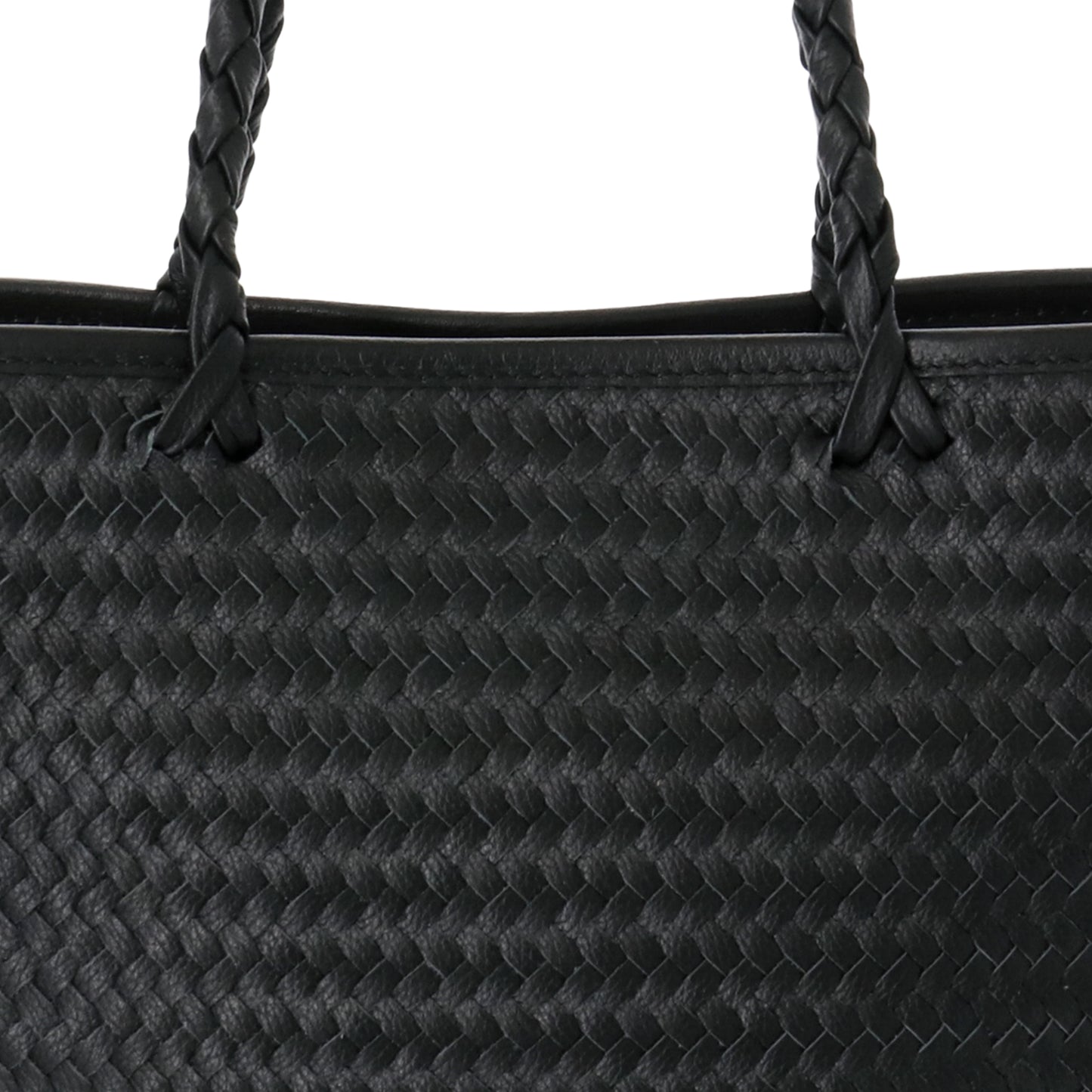 美しい手仕事を感じていただけるポイントの一つに、ハンドルとバッグ本体の繋ぎ目のディティールです。ハンドルは4本の革紐を丸くなるように編んでいて、腕や肩へのあたりがやさしいところが特徴です。また、本体のメッシュからハンドルが繋がるようなデザインになっています。