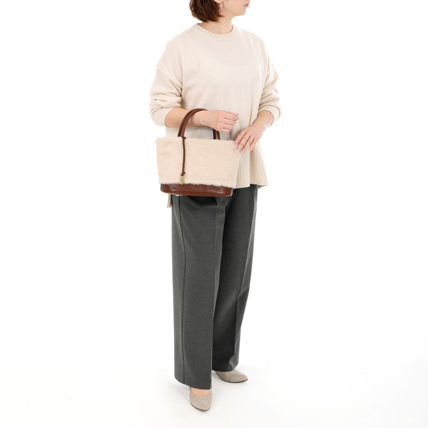 スペイン語で「かわいいもの」を意味するMonada。季節感を楽しめるリサイクルファーと上品なレザーの組み合わせが、大人のかわいらしさを演出します。また、アクセントにIBIZAオリジナルの真鍮チャームを添えることで、きらめきと躍動感を表現しました。カジュアルなランチや知人との会食、ちょっとしたお買物などのコーディネートに、Monadaというやわらかなワンポイントを。