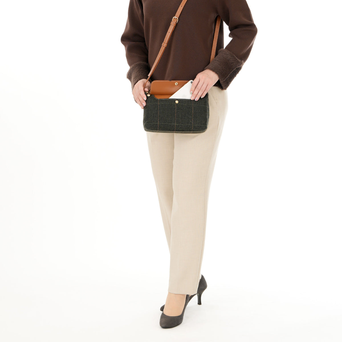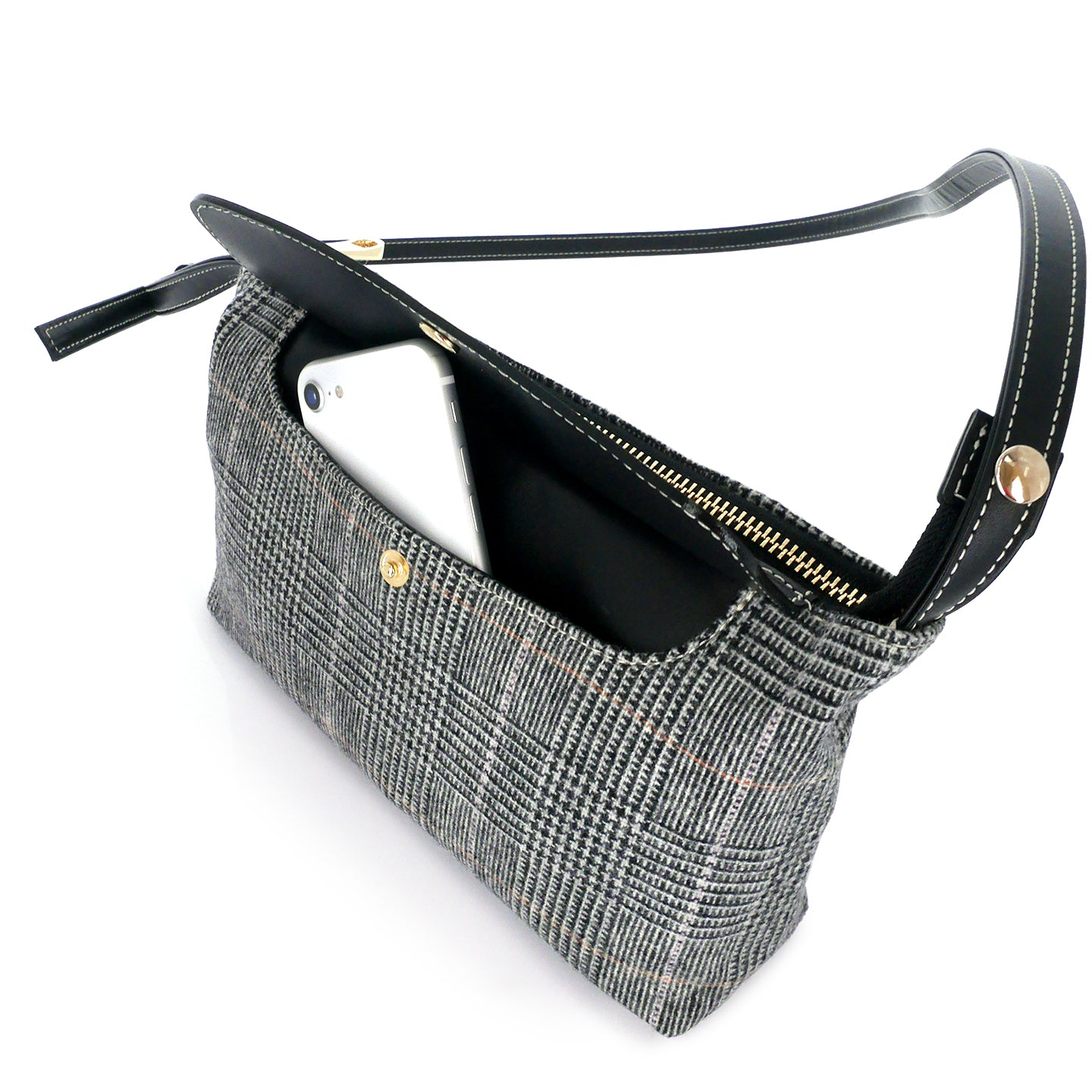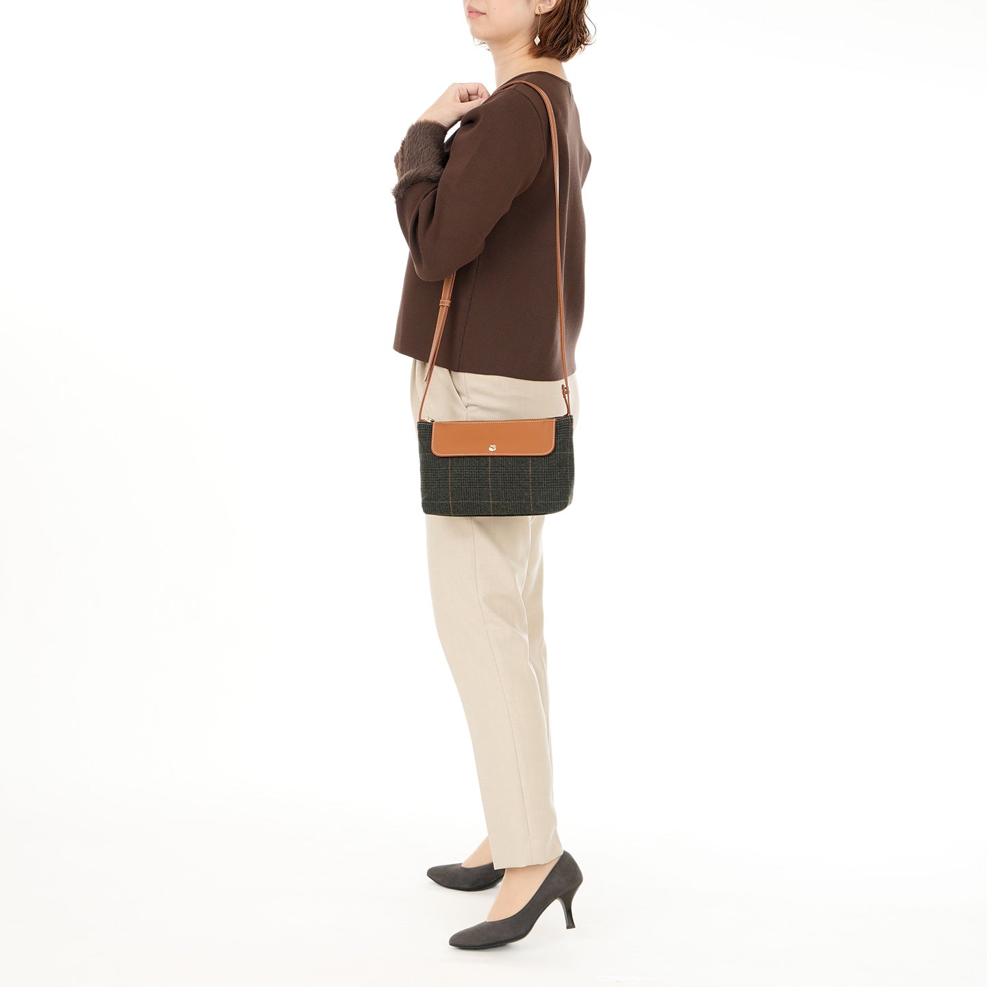 ウールのクラシカルなチェック柄とスムースレザーの組み合わせが上品な雰囲気で、ちょっとしたお出かけやランチ、ご旅行にもぴったりです。