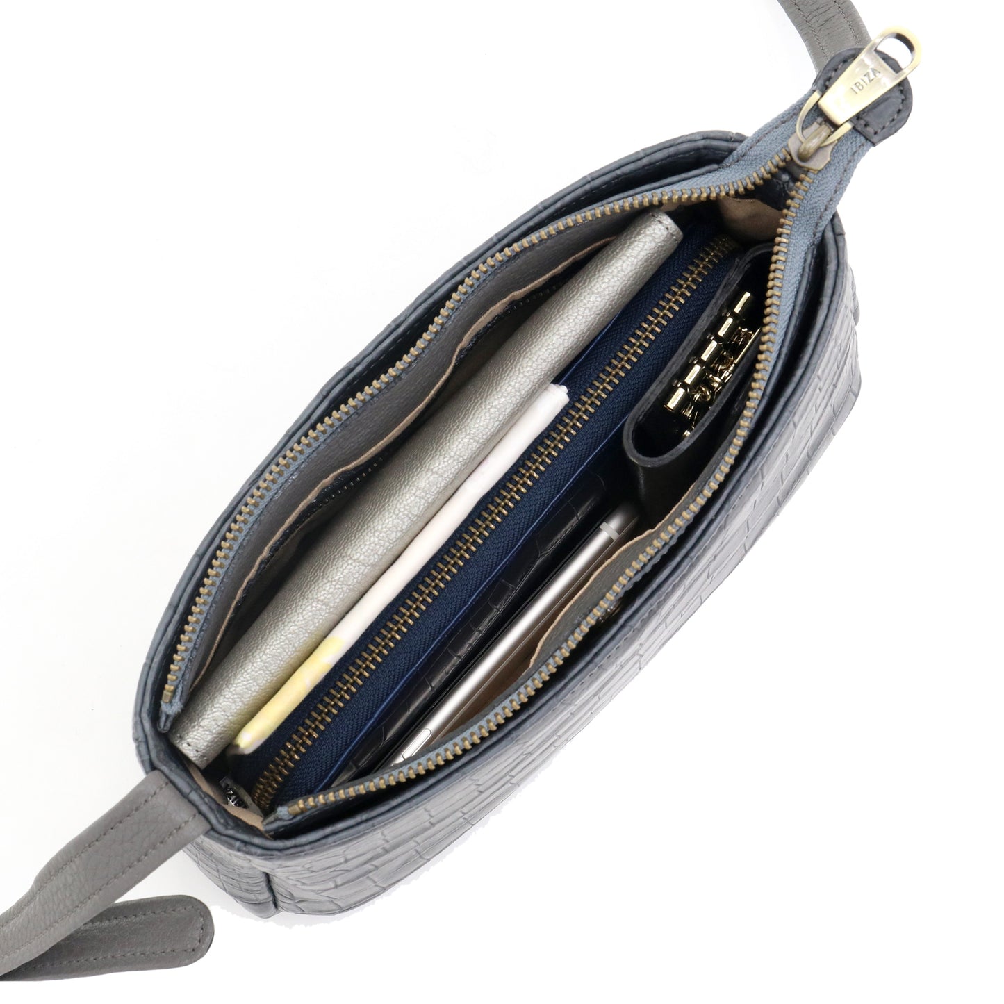 クロコダイルレザーがもつ”ハリ感”を活かした、やさしいラインのショルダーバッグ。コーナー部分にステッチを施し立体感のあるフォルムに仕上げました。バッグの内装にはクロコダイルに相応しい上質なディアスエード調の生地を使用。小さめサイズながら、財布や携帯電話などいつも持ち歩くアイテムはしっかり収納できるほか、ポケットも充実しているので細かなものも散らからず整理できます。